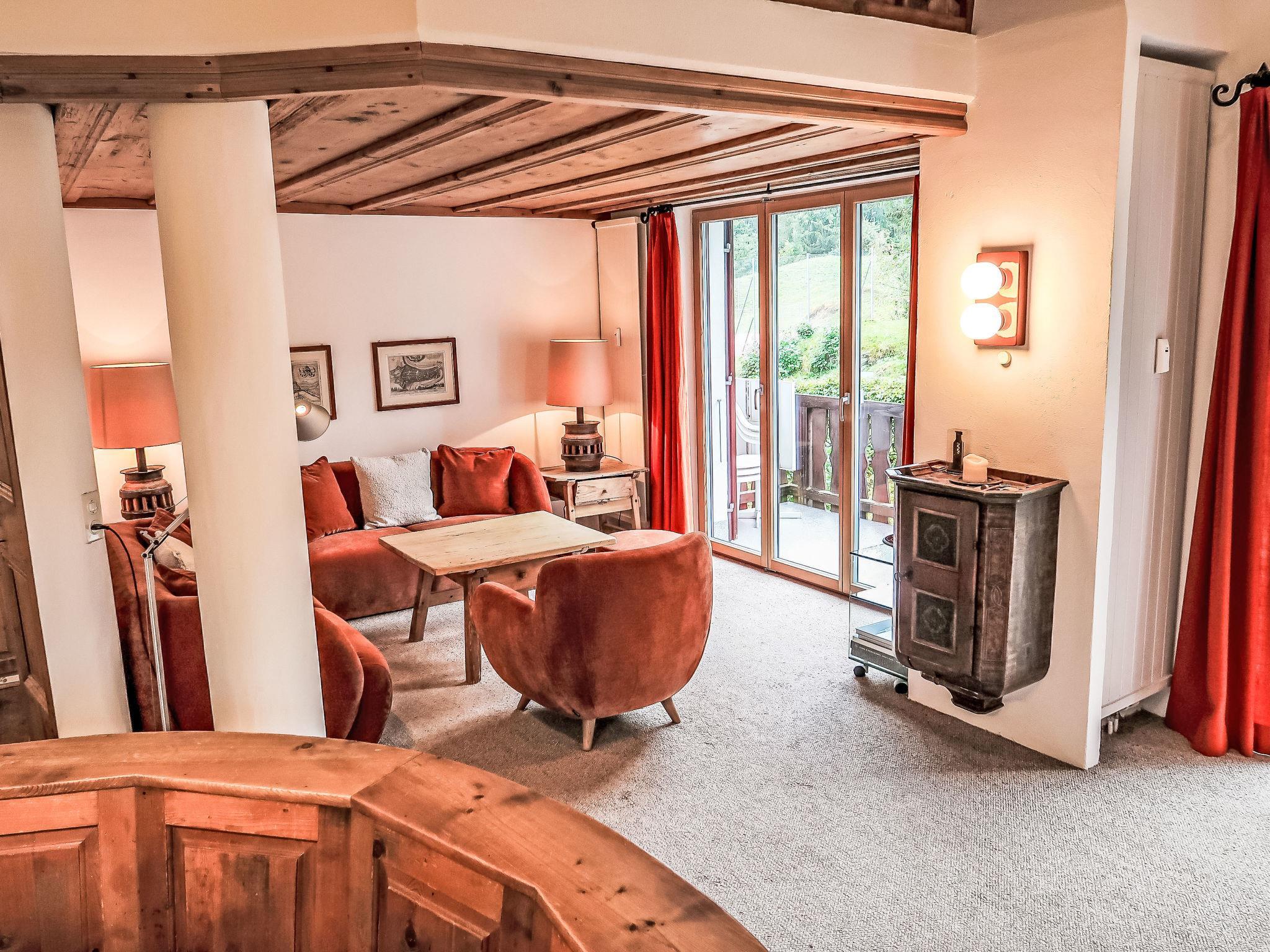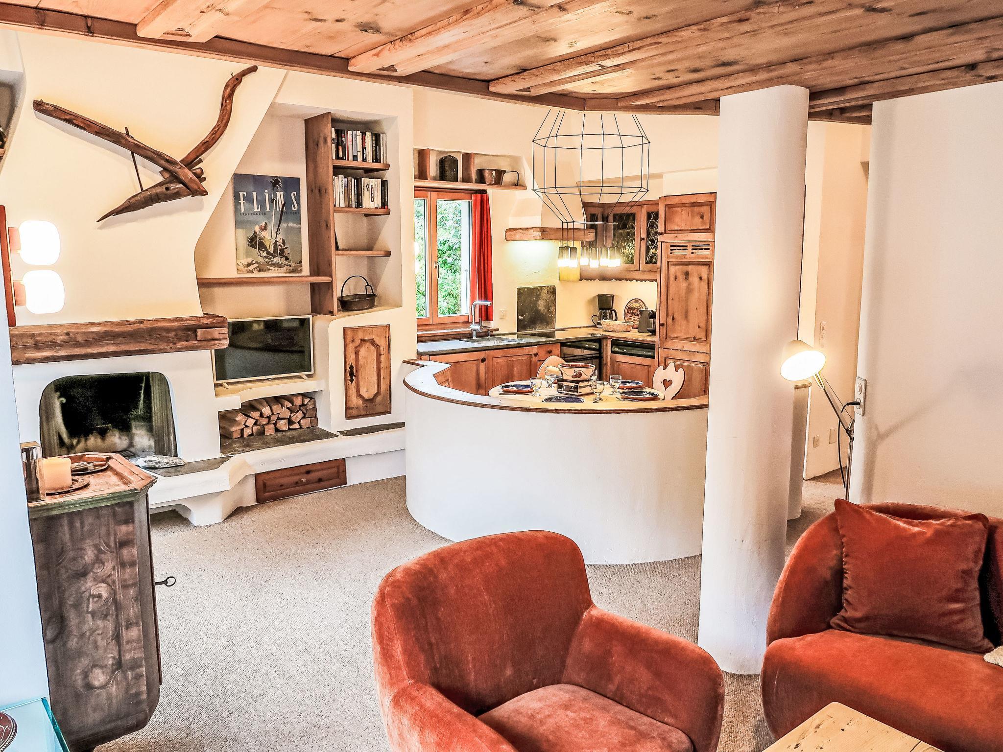 "Villa Waldpark", 5-Zimmer-Maisonette-Wohnung 85 m2 auf 2 Stockwerken im 1. Stock. Komfortabel und gemütlich eingerichtet: Wohn-/Esszimmer mit Sat-TV (Flachbildschirm). Ausgang zum Balkon. 1 Zimmer mit 1 Doppelbett (160 cm, Länge 185 cm). 1 Kinderzimmer mit 1 x 2 Etagenbetten (90 cm, Länge 185 cm). Offene Küche (Backofen, Geschirrspüler, 4 Induktionskochplatten, Wasserkocher, elektrische Kaffeemaschine, Kapseln für die Kaffeemaschine (Nespresso) extra, Racletteofen, Fondue Set (Chinoise, Käse)) mit Esstisch. Bad/WC. Obergeschoss: Galerie. 1 Zimmer mit 1 Doppelbett (180 cm, Länge 185 cm). Dusche/WC. Balkon 10 m2, Südlage. Balkonmöbel, Liegestühle (1). Schöne Sicht auf die Berge und die Landschaft. Zur Verfügung: Waschmaschine. Internet (Wireless LAN, gratis). Garage Nr. 7 (1 Auto). Bitte beachten: geeignet für Familien. Nichtraucher-Unterkunft.