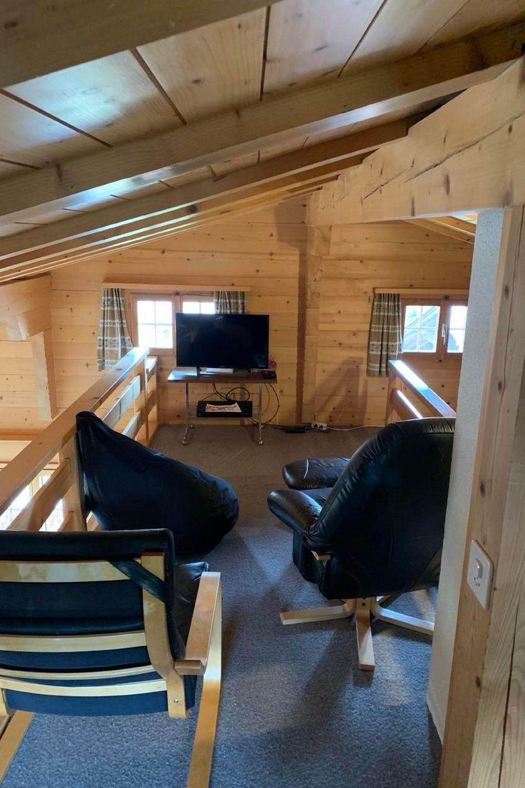 Im Inneren des Chalets Bärgblüemli sorgt eine sorgfältige und gemütliche Einrichtung dafür, dass Sie sich sofort wie zu Hause fühlen. Die Ausstattung ist darauf ausgerichtet, dass es Ihnen während Ihres Aufenthalts an nichts fehlt. Für Ihr Wohlbefinden sind das Wohnzimmer mit einem einladenden Kamin, ein bequemes Sofa und ein Esstisch ausgestattet. Die Schlafzimmer verfügen über Einbauschränke und Nachttischlampen, die eine gemütliche Atmosphäre schaffen. In der Küche finden Sie einen Racletteofen und ein Fondue-Rechaud neben allen notwendigen Küchenutensilien, um die traditionelle Schweizer Küche zu genießen.