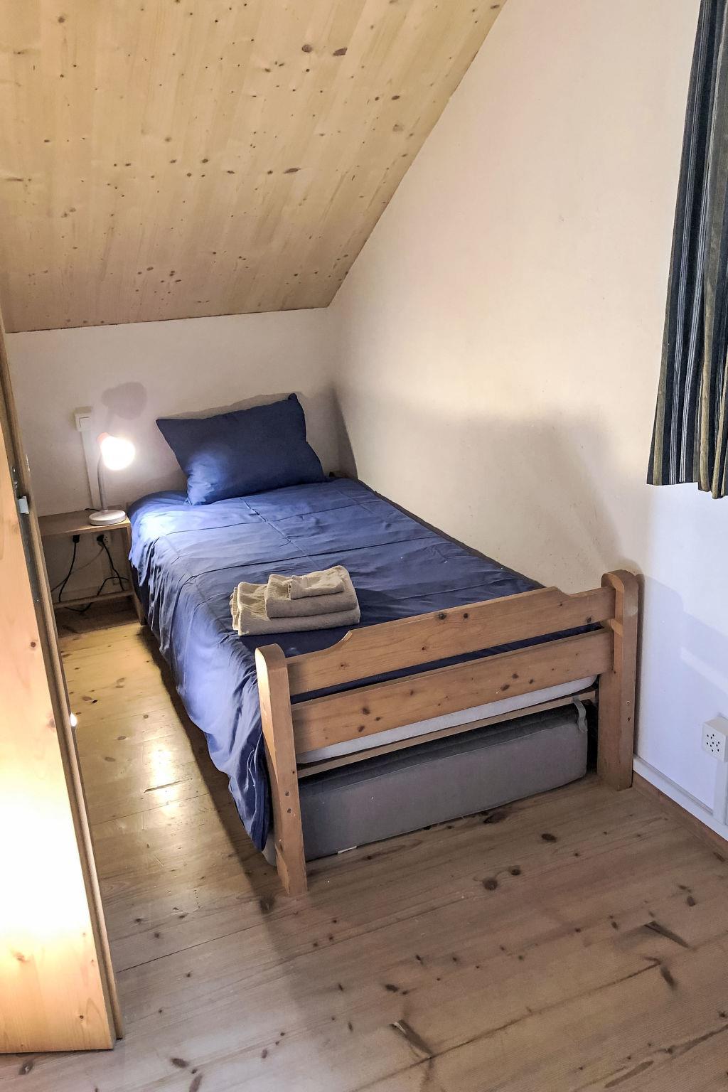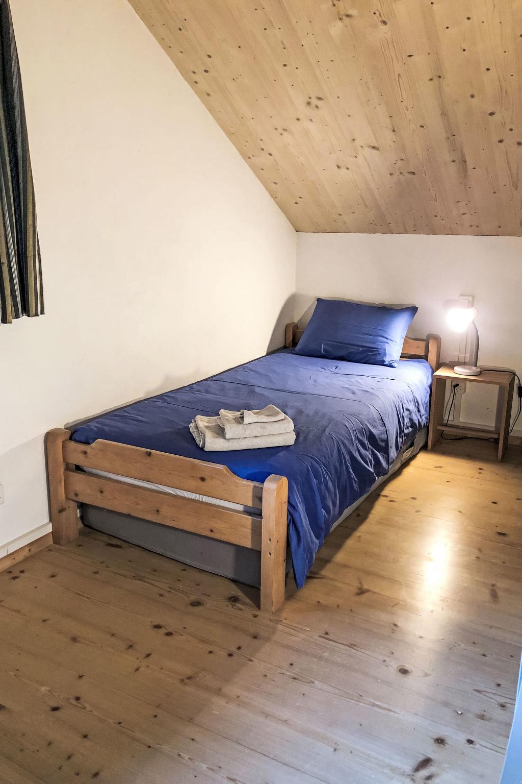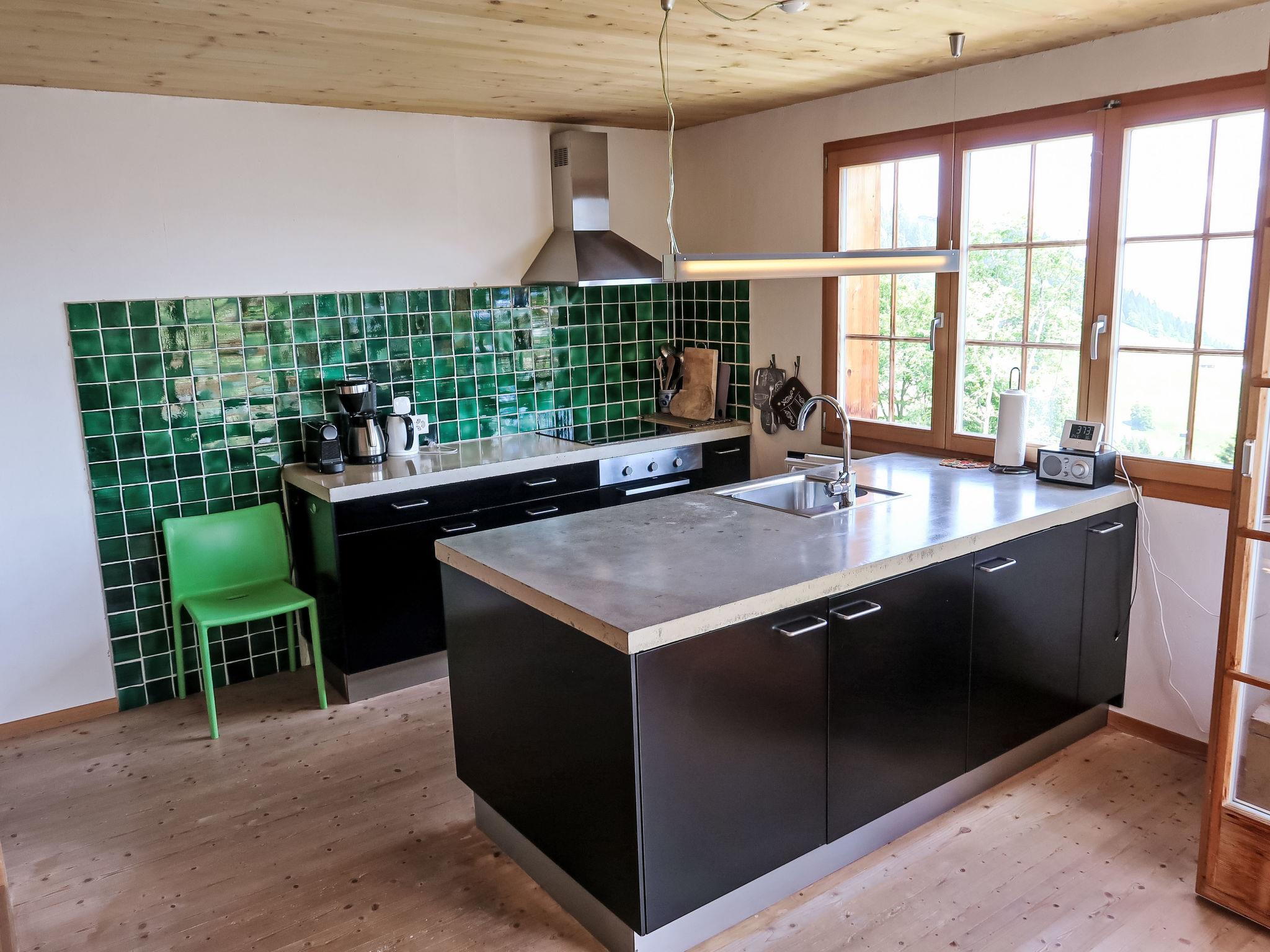 3-Zimmer-Chalet 92 m2 auf 2 Stockwerken. Hell, teilweise abgeschrägt, komfortabel und mit viel Holz eingerichtet: offenes Wohn-/Esszimmer mit Schwedenofen, Esstisch, Kabel-TV, Flachbildschirm und Radio. Ausgang zur Terrasse. Offene Küche (Backofen, Geschirrspüler, 4 Glaskeramikplatten, Tiefkühler, elektrische Kaffeemaschine, Fondue Set (Käse)). Bad/Dusche/WC. E-Heizung, Holzheizung, Boiler (300 Liter). Obergeschoss: 1 Doppelzimmer mit 1 Doppelbett (180 cm, Länge 200 cm). 1 Zimmer mit 2 Betten (90 cm, Länge 200 cm), 1 Schlafmöglichkeit (80 cm, Länge 180 cm). Holzdielenboden. Terrasse 12 m2. Terrassenmöbel, Liegestühle (2). Sehr schöne Panoramasicht auf die Berge, das Tal und die Landschaft. Zur Verfügung: Kinderhochstuhl, Babybett, Wickelkommode. Internet (WLAN, gratis). Garage in 100 m. Bitte beachten: geeignet für Familien. Nichtraucher-Unterkunft.