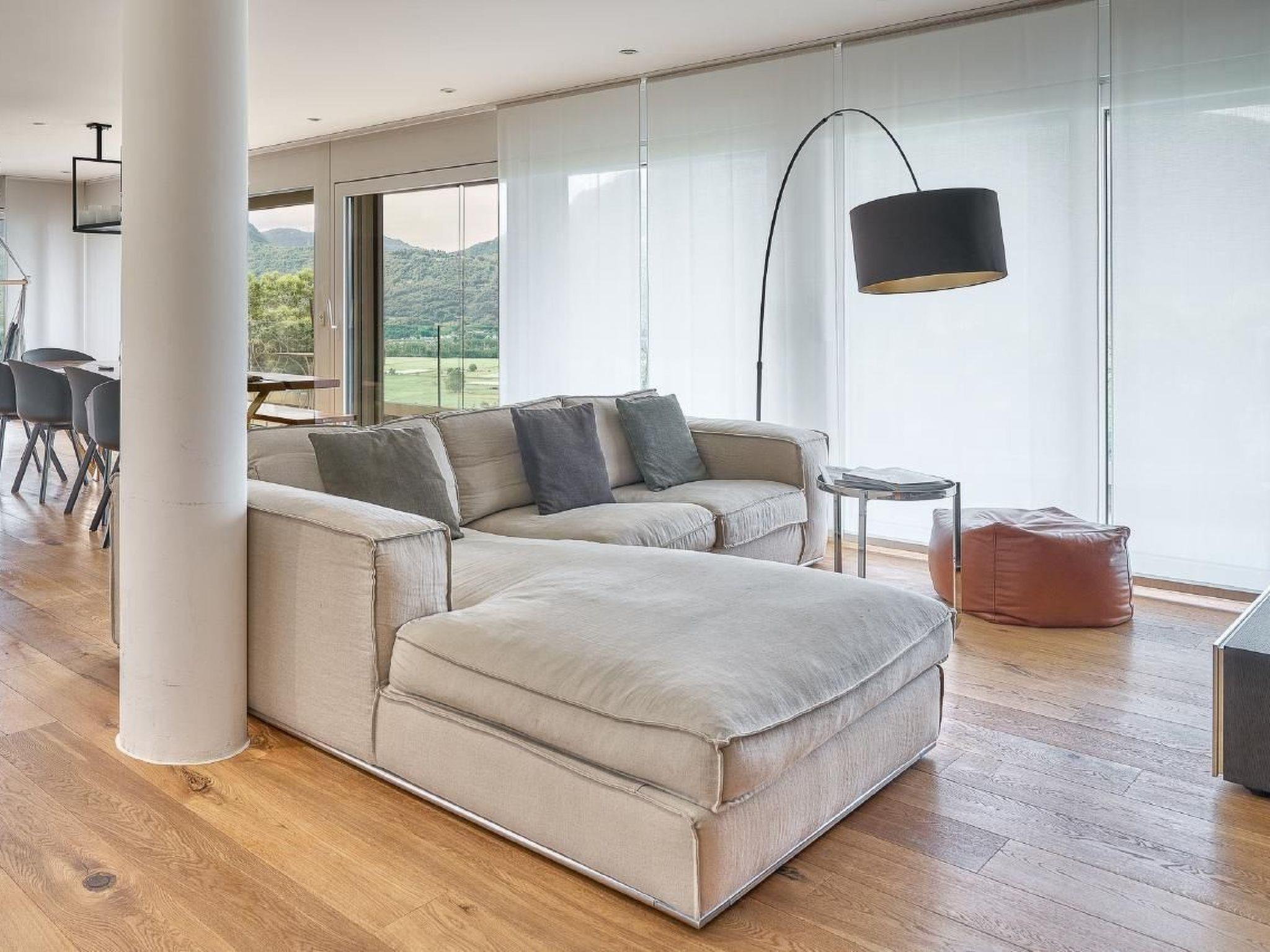 Entdecken Sie die Ferienwohnung Diamond in Gordola, Ihre exklusive Oase hoch über dem glitzernden Lago Maggiore. Diese luxuriöse 2.5-Zimmer-Ferienwohnung vereint modernes Design mit einem einladenden Ambiente und verspricht Ihnen einen unvergesslichen Aufenthalt im sonnigen Tessin. Lassen Sie sich von der ruhigen und exklusiven Lage begeistern, während Sie von der grosszügigen Fensterfront aus einen atemberaubenden Panoramablick auf die malerische Landschaft und den funkelnden Lago Maggiore geniessen. Ob beim Entspannen auf dem bequemen Sofa oder beim Geniessen eines köstlichen Abendessens – die beeindruckende Aussicht begleitet Sie stets. Im Inneren erwartet Sie ein stilvolles Interieur mit einem edlen Parkettboden, harmonisch abgestimmten hellen Möbeln und eleganten dunklen Akzenten. Ein besonderes Highlight bildet der grosszügige Esstisch und der geräumige begehbare Kleiderschrank, der für ausreichend Stauraum sorgt. Das Schlafzimmer verwöhnt Sie mit einem komfortablen Doppelbett und einem direkten Zugang zum Hauptbadezimmer. Das grosszügige Hauptbadezimmer verfügt über eine Badewanne, eine separate Dusche, zwei Waschbecken und ein Bidet. Erleben Sie entspannende Momente in der Badewanne, während Sie den Blick auf die beeindruckende Landschaft von Gordola geniessen. Ein zusätzliches kleines Badezimmer mit Dusche komplettiert das Angebot. Die moderne und voll ausgestattete Küche mit ihrer grossen Kochinsel und dem geräumigen Kühlschrank lädt zum gemeinsamen Kochen ein. Ein Weinkühlschrank bietet den perfekten Platz zur Lagerung regionaler Weine, die Sie bei einem selbstgekochten Abendessen geniessen können. Für gemütliche Abende sorgt der einladende Kamin, der an kühleren Tagen für wohlige Wärme sorgt und die hochwertige Soundanlage, die für Unterhaltung sorgt. Im Aussenbereich erwartet Sie ein idyllischer Gartensitzplatz, ein sonniger Balkon, Grillmöglichkeiten und eine erfrischende Aussendusche. Zudem stehen Ihnen zwei gedeckte Parkplätze zur Verfügung und ein Lift in der Wohnanlage sorgt für zusätzlichen Komfort. Bitte beachten Sie, dass in dieser exklusiven Ferienwohnung keine Haustiere erlaubt sind. Zudem ist die Wohnung ausschliesslich für erwachsene Gäste reserviert. Reservieren Sie noch heute und tauchen Sie ein in die faszinierende Schönheit des Lago Maggiore – Ihr Traumurlaub erwartet Sie im Apartment Diamond!
