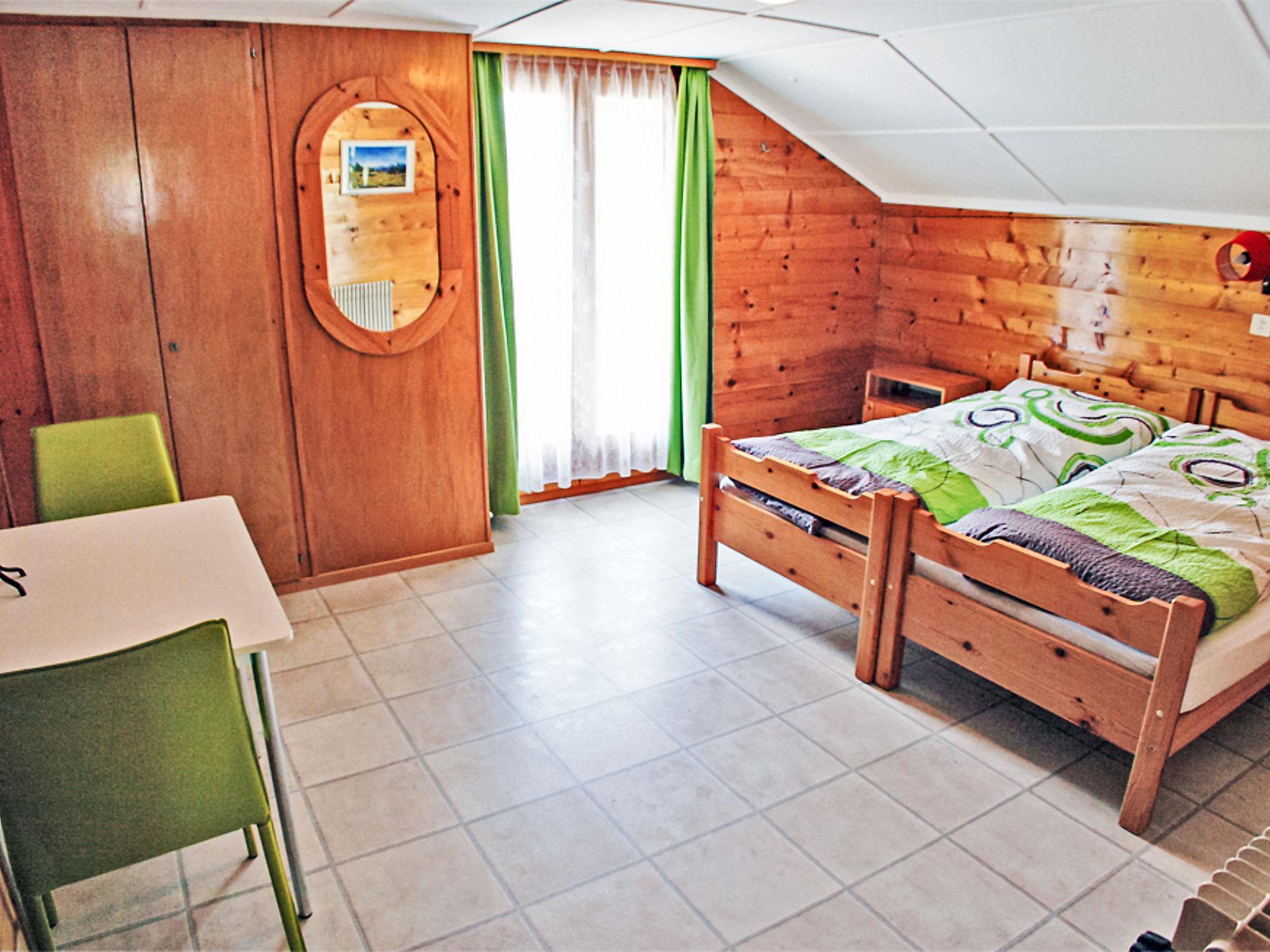 "Bergfink Dachgeschoss", 4-Zimmer-Wohnung 84 m2 im 3. Stock. Teilweise abgeschrägt, renoviert im Jahre 2013, schön und gemütlich eingerichtet: Wohn-/Esszimmer mit Sat-TV (Flachbildschirm), Stereoanlage. Ausgang zum Balkon, Richtung Westen. 1 abgeschrägtes Doppelzimmer mit 2 Betten. Ausgang zum Balkon, Richtung Süden. 1 kleines Zimmer mit 2 Betten. 1 Zimmer mit 2 Wandschrankbetten und Sat-TV (Flachbildschirm). Ausgang zum Balkon, Richtung Süden. Abgeschrägte Küche (Backofen, Geschirrspüler, 4 Glaskeramikplatten, elektrische Kaffeemaschine) mit Esstisch. Bad/WC, Dusche/WC. Balkon. Balkonmöbel, Liegestühle (2). Schöne Sicht auf die Berge, die Landschaft und die Ortschaft. Zur Verfügung: Babybett. Internet (WLAN, gratis). Parkplatz beim Haus. Bitte beachten: Nichtraucher-Unterkunft. Maximal 1 Haustier/Hund erlaubt. Das Zimmer mit den 2 Wandschrankbetten verfügt auch über eine kleine Küche mit 4 Kochplatten und Backofen (Studio).