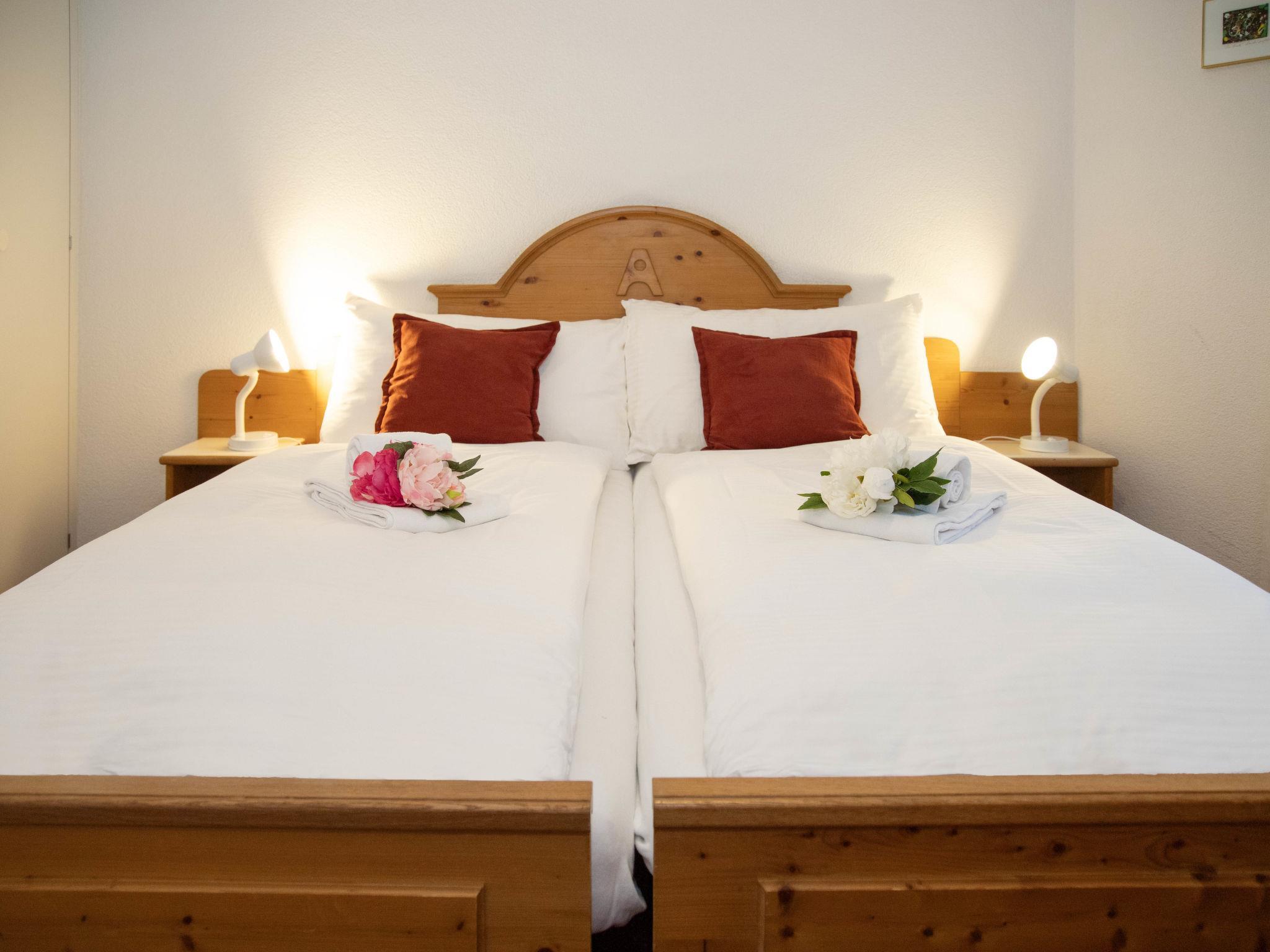 3-Zimmer-Wohnung 57 m2 im 2. Stock, Südlage. Wohn-/Esszimmer mit Kabel-TV (Flachbildschirm). 2 Doppelzimmer. Offene Küche (Backofen, Geschirrspüler, 4 Glaskeramikplatten, Toaster, Wasserkocher, elektrische Kaffeemaschine). Bad/WC. Balkon, Südlage. Terrassenmöbel. Schöne Sicht auf die Berge und Eiger. Zur Verfügung: Haartrockner. Internet (Wireless LAN, gratis). Bitte beachten: Nichtraucher-Unterkunft. Maximal 1 Haustier/Hund erlaubt. Ein Fondue Set (Fleisch oder Käse) sowie ein Raclette Ofen kann an der Rezeption ausgeliehen werden.