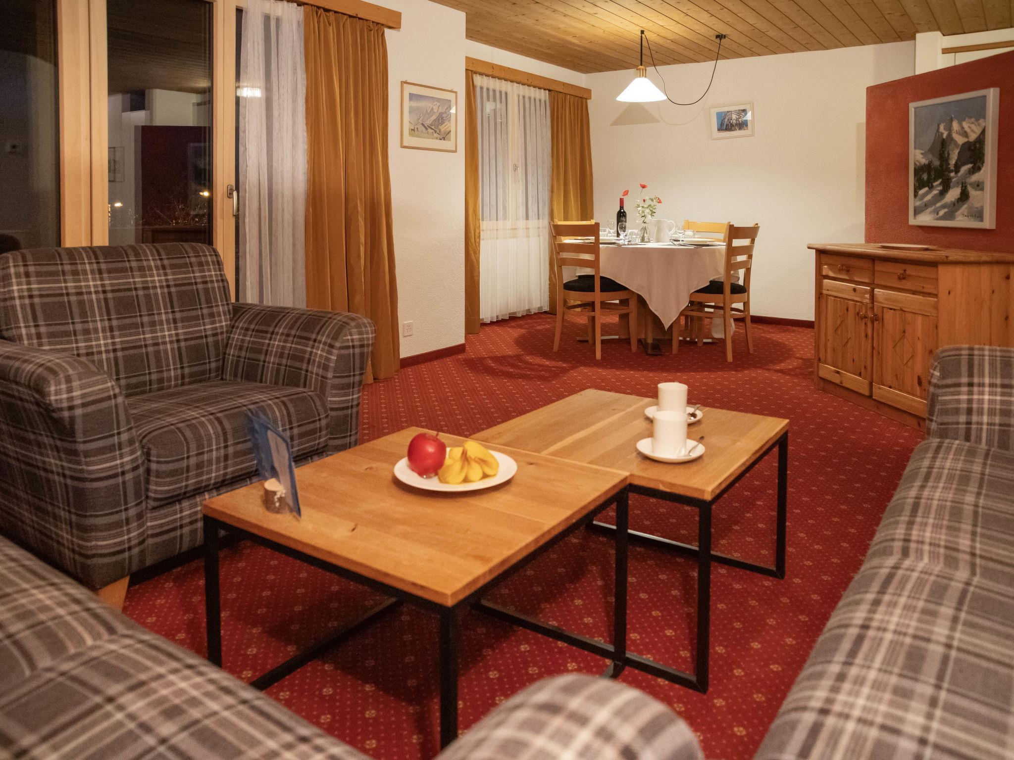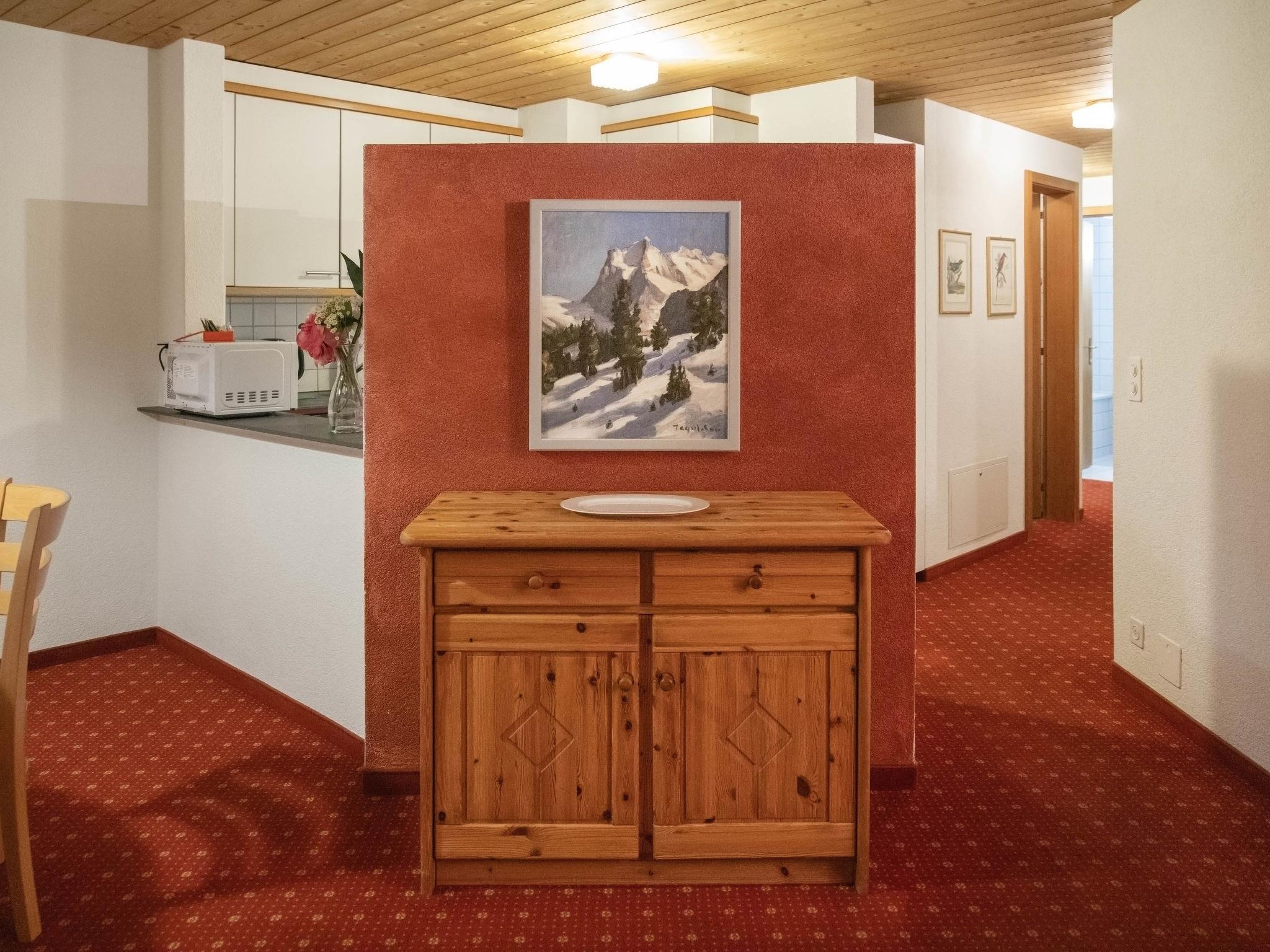 3-Zimmer-Wohnung 71 m2 im 2. Stock, Südostlage. Wohn-/Esszimmer mit Kabel-TV (Flachbildschirm). 2 Doppelzimmer. Küche (Backofen, Geschirrspüler, 4 Glaskeramikplatten, Toaster, Wasserkocher, elektrische Kaffeemaschine). Bad/WC, sep. WC. Balkon, Südlage, grosse Terrasse, Ostlage. Terrassenmöbel. Sicht auf die Berge und Eiger. Zur Verfügung: Haartrockner. Internet (Wireless LAN, gratis). Bitte beachten: Nichtraucher-Unterkunft. Maximal 1 Haustier/Hund erlaubt. Ein Fondue Set (Fleisch oder Käse) sowie ein Raclette Ofen kann an der Rezeption ausgeliehen werden.