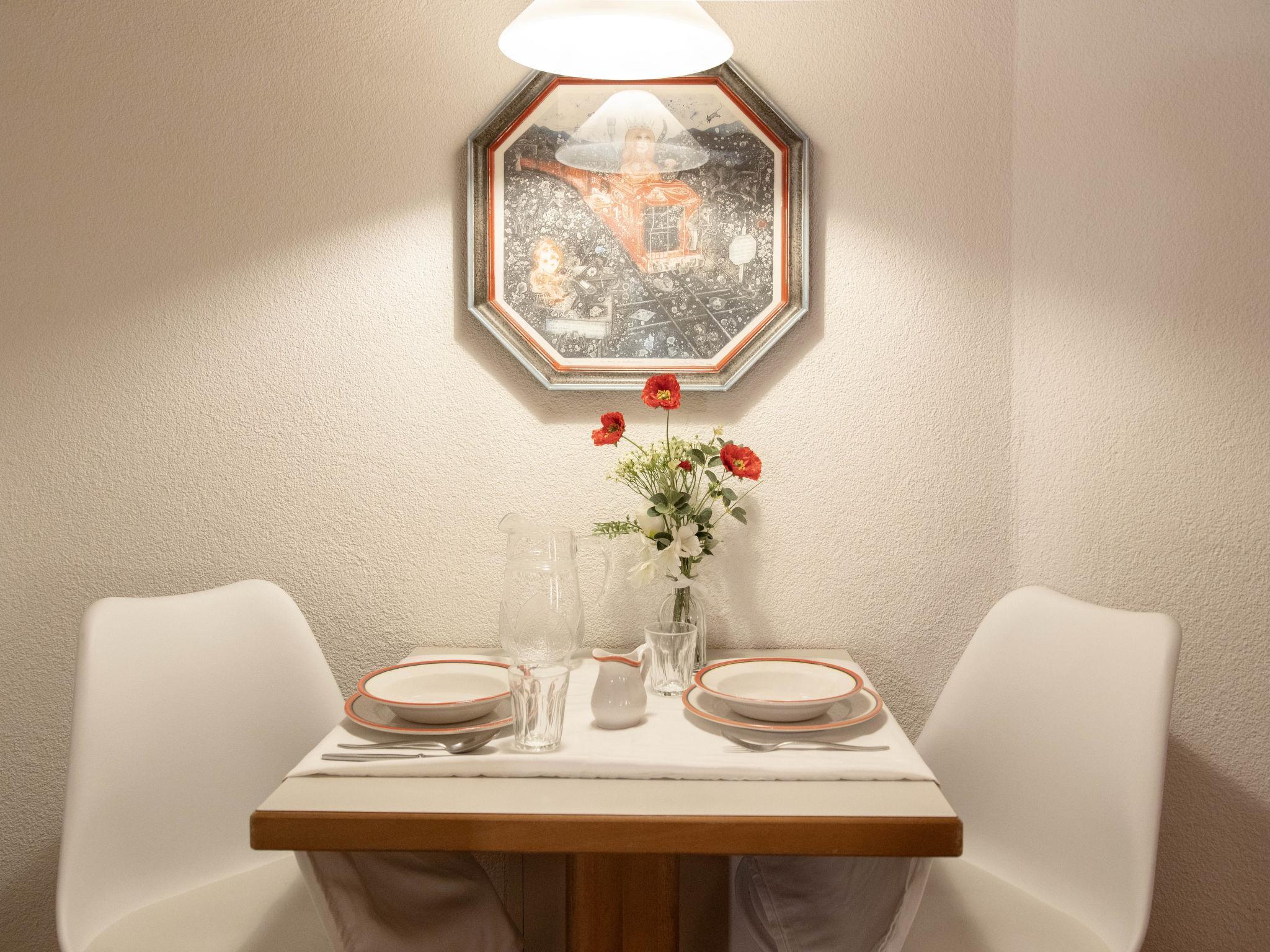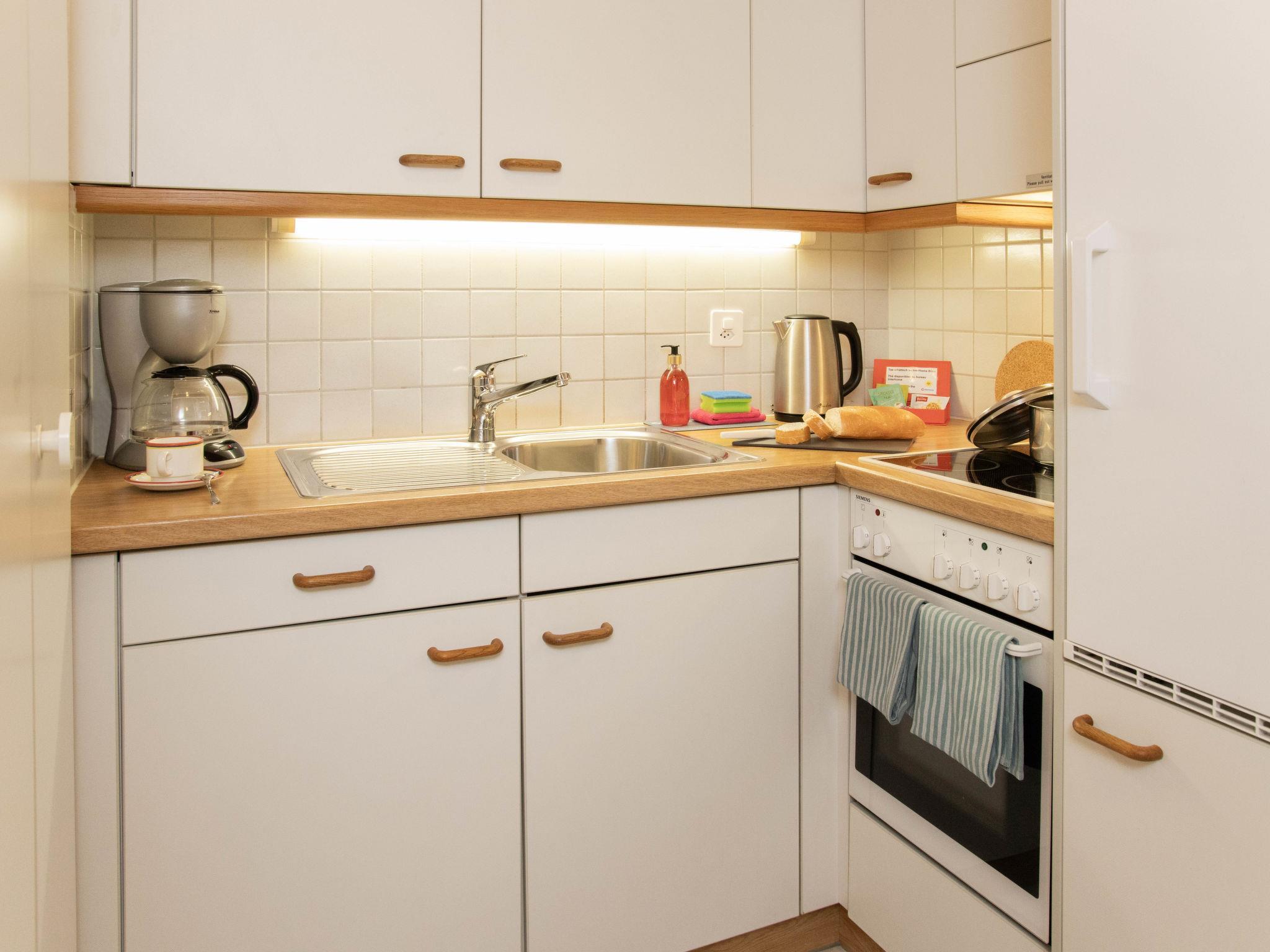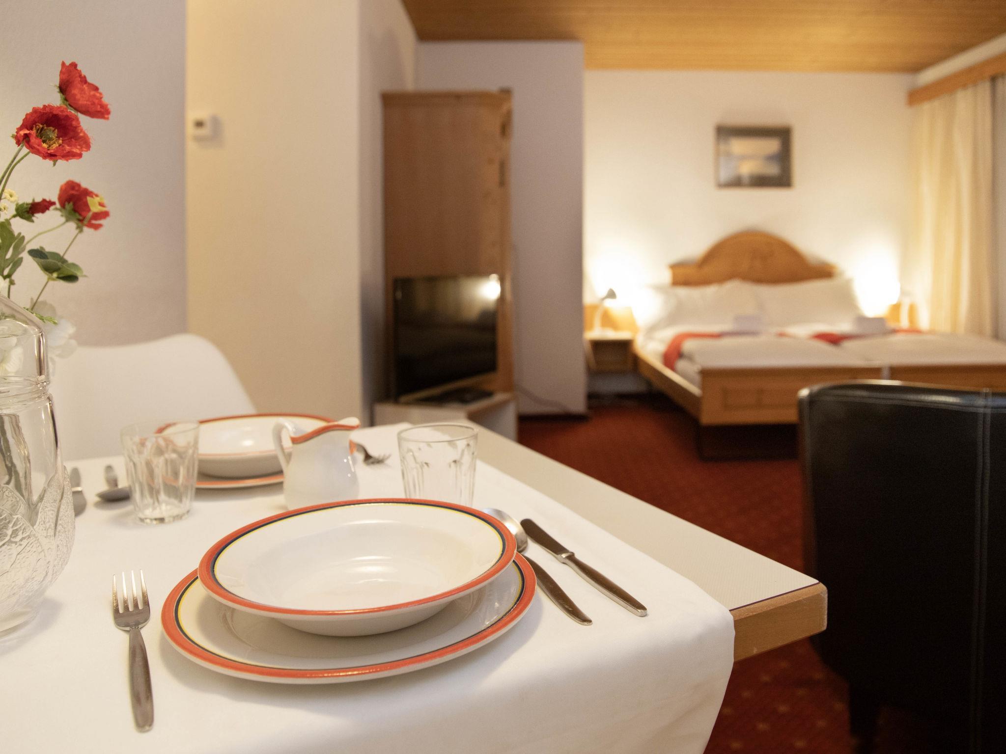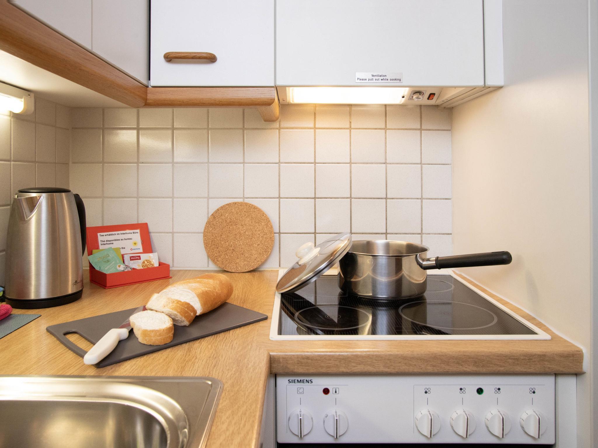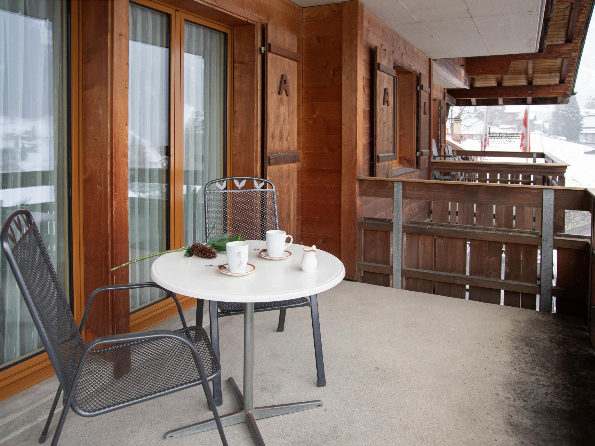 1-Zimmer-Wohnung 26 m2 im 3. Stock, Südwestlage. Wohn-/Schlafzimmer mit 2 Betten und Kabel-TV (Flachbildschirm). Küche (Backofen, 4 Glaskeramikplatten, Toaster, Wasserkocher, elektrische Kaffeemaschine). Bad/WC. Balkon. Terrassenmöbel. Schöne Sicht auf die Berge und Eiger. Zur Verfügung: Haartrockner. Internet (Wireless LAN, gratis). Bitte beachten: Nichtraucher-Unterkunft. Maximal 1 Haustier/Hund erlaubt. Ein Fondue Set (Fleisch oder Käse) sowie ein Raclette Ofen kann an der Rezeption ausgeliehen werden.
