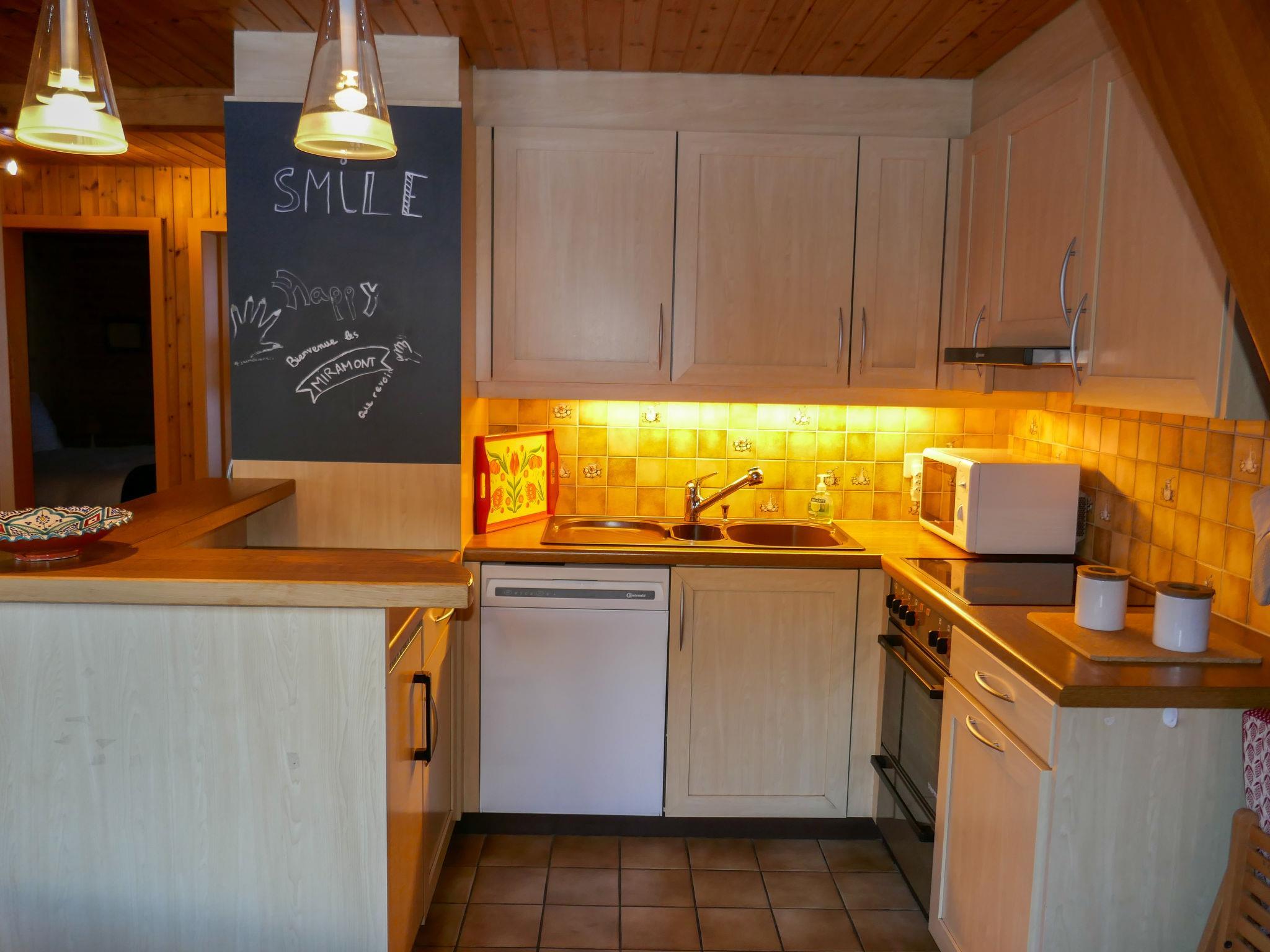 "Réan", 3-Zimmer-Wohnung 50 m2 auf 2 Stockwerken, im Dachgeschoss. Objekt geeignet für 2 Erwachsene + 2 Kinder. Hell, teilweise abgeschrägt, teilweise renoviert im Jahre 2025, zweckmässig und gemütlich eingerichtet: offenes Wohn-/Esszimmer mit Schwedenofen, Esstisch und Kabel-TV. Ausgang zum Balkon. 1 Zimmer mit 1 Doppelbett (160 cm, Länge 200 cm). Ausgang zum Balkon. 1 Kinderzimmer, 2 Etagenbetten (90 cm, Länge 200 cm). Ausgang zum Balkon. Offene Küche (4 Kochplatten, Backofen, Geschirrspüler, 4 Glaskeramikplatten, Toaster, Wasserkocher, Mikrowelle, elektrische Kaffeemaschine, Kapseln für die Kaffeemaschine (Nespresso) extra, Racletteofen, Fondue Set (Käse)). Dusche/WC. Obergeschoss: (steile Treppe) abgeschrägtes, offenes Spielzimmer. Balkon, Südlage Balkon, Nordlage. Balkonmöbel. Herrliche Panoramasicht auf das Tal, die Ortschaft und Wetterhorn. Zur Verfügung: Internet (Wireless LAN, gratis). Parkplatz Nr. Réan beim Haus. Bitte beachten: Nichtraucher-Unterkunft. Eigener Eingang.