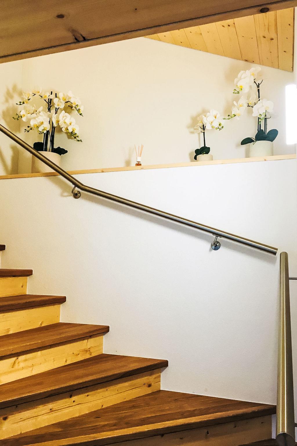 3-Zimmer-Wohnung 100 m2 auf 2 Stockwerken, Südlage. Geräumig, vollständig renoviert im Jahre 2023, komfortabel und gemütlich eingerichtet: offenes Wohn-/Esszimmer, Deckenhöhe 200 cm mit Esstisch, TV und Internationale TV-Sender. Ausgang zum Gartensitzplatz. Offene Küche (Backofen, Geschirrspüler, 4 Glaskeramikplatten, Toaster, Wasserkocher, elektrische Kaffeemaschine, Kapseln für die Kaffeemaschine (Nespresso) extra, Racletteofen, Fondue Set (Käse)). Dusche/WC. Obergeschoss: 2 abgeschrägte Zimmer, Deckenhöhe 60 - 200 cm, niedrige Türrahmen, Höhe 190 cm, jedes Zimmer mit 1 Bett (180 cm, Länge 200 cm). Herrliche Sicht auf die Berge und die Landschaft. Zur Verfügung: Waschmaschine, Wäschetrockner, Haartrockner. Internet (Wireless LAN, gratis). Parkplatz beim Haus. Bitte beachten: Nichtraucher-Unterkunft. Eigener Eingang, Feuerlöscher.