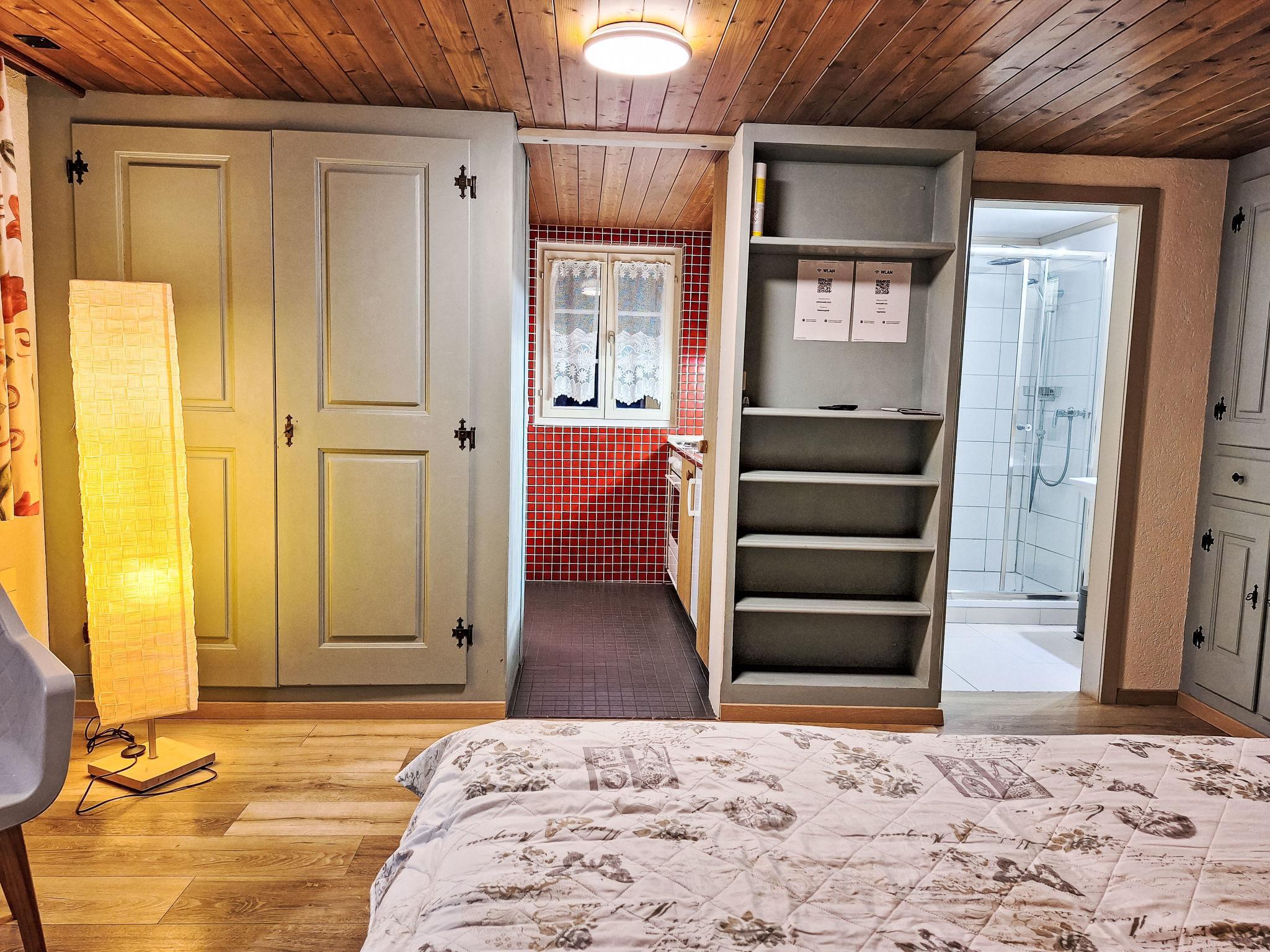 1-Zimmer-Wohnung 30 m2, im Erdgeschoss, Südlage. Schön und gemütlich eingerichtet: Wohn-/Schlafzimmer mit 1 Doppelbett (2 x 90 cm, Länge 200 cm), Internationale TV-Sender. Ausgang zum Gartensitzplatz. Kochnische (2 Kochplatten, Backofen, Toaster, Wasserkocher, elektrische Kaffeemaschine, Kapseln für die Kaffeemaschine (Nespresso) extra). Dusche/WC. Parkettboden. Terrasse 7 m2, Südlage. Terrassenmöbel. Herrliche Sicht auf die Berge, das Tal und Eigernordwand, Schynige Platte. Zur Verfügung: Haartrockner. Internet (WLAN, gratis). Parkplatz in 30 m. Bitte beachten: Nichtraucher-Unterkunft. Maximal 1 Haustier/Hund erlaubt. Feuerlöscher.