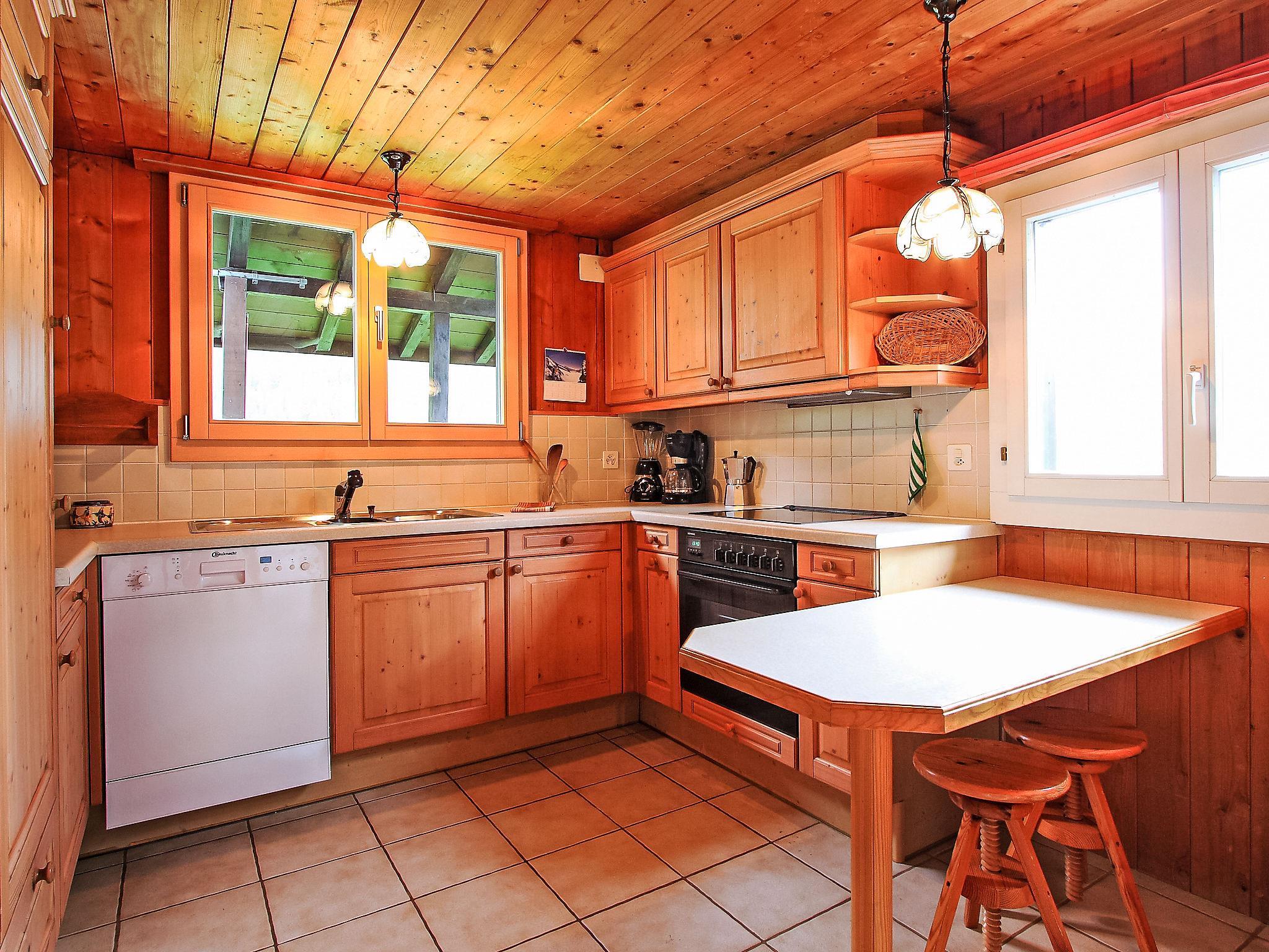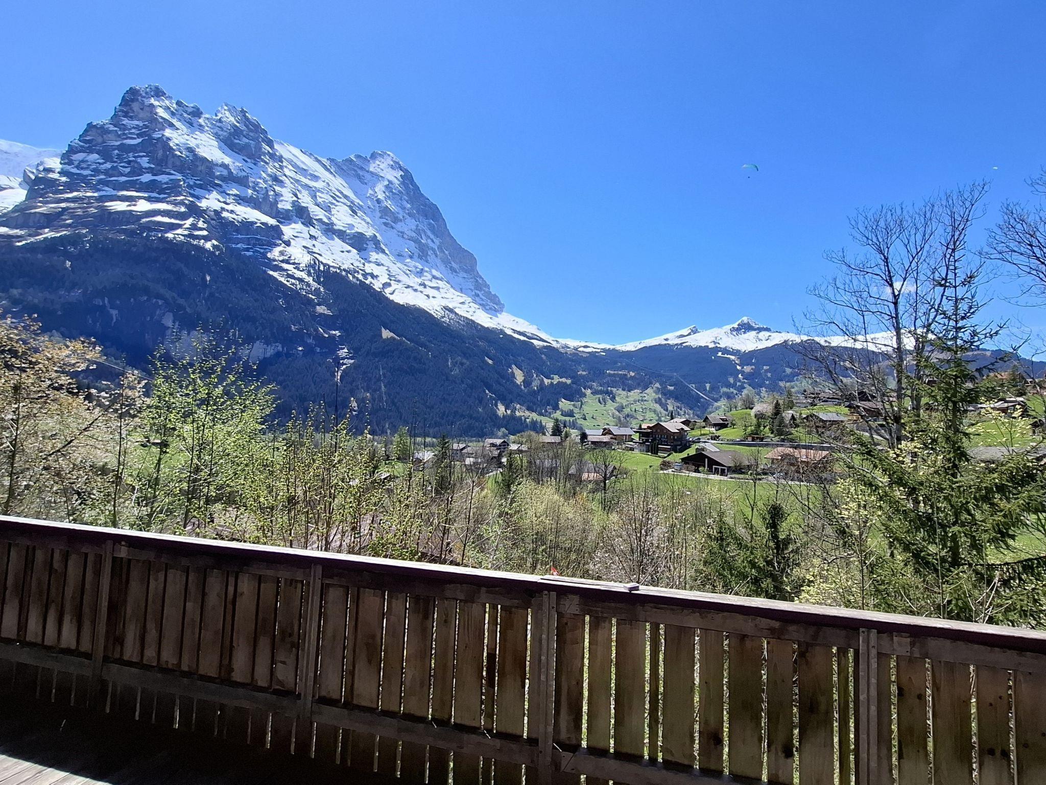 4-Zimmer-Chalet 70 m2, Südlage. Gemütlich und mit viel Holz eingerichtet: Wohn-/Esszimmer mit offenem Kamin und TV. Ausgang zur Terrasse, Richtung Süden und Richtung Westen. 2 Zimmer, jedes Zimmer mit 2 Betten (90 cm, Länge 200 cm). 1 Zimmer mit 1 franz. Bett (1 x 160 cm, Länge 200 cm). Offene Küche (Backofen, Geschirrspüler, 4 Glaskeramikplatten, Mikrowelle, elektrische Kaffeemaschine). Dusche/WC. Parkettboden. Grosse Terrasse, Südlage. Terrassenmöbel. Herrliche Sicht auf die Berge, das Tal, die Landschaft und Eigernordwand. Zur Verfügung: Internet (Wireless LAN, gratis). Parkplatz beim Haus. Bitte beachten: 1 Haustier/Hund erlaubt. Feuerlöscher.