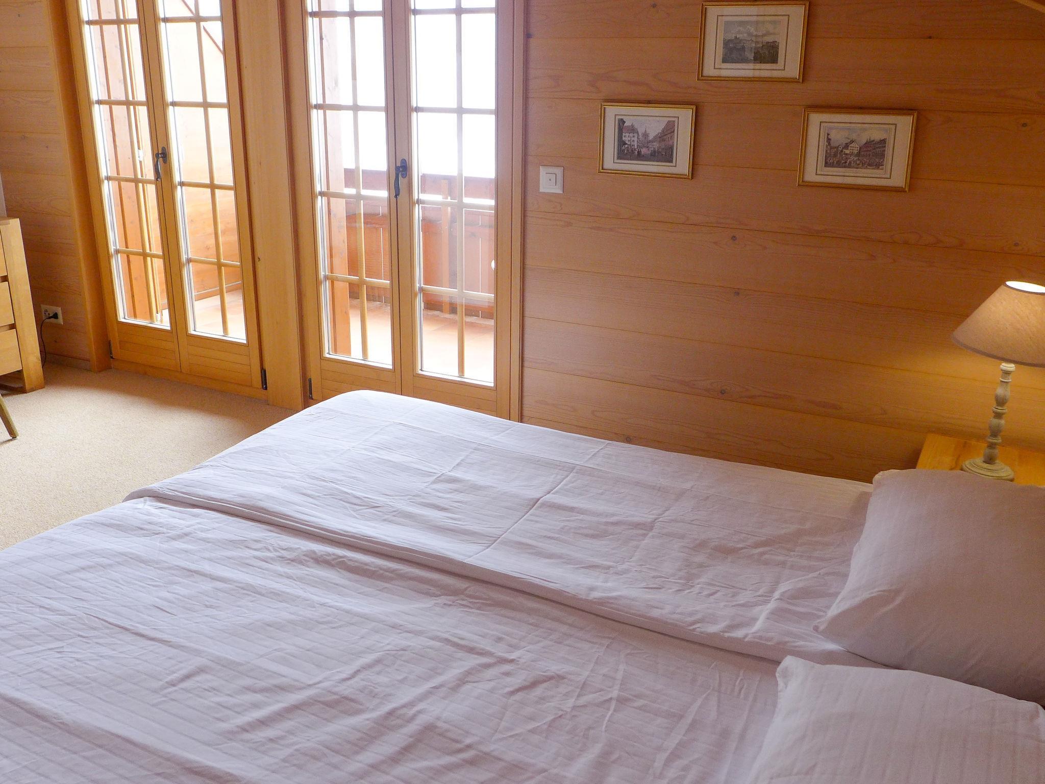 4-Zimmer-Wohnung 119 m2 im 1. Stock, Südlage. Komfortabel und gemütlich eingerichtet: Wohn-/Esszimmer mit Schwedenofen und Digital-TV. Ausgang zum Balkon, Richtung Süden und Richtung Westen. 1 Zimmer mit 1 Doppelbett (2 x 90 cm, Länge 200 cm). Ausgang zum Balkon, Richtung Westen. Offene Küche (Geschirrspüler, 4 Glaskeramikplatten, Toaster, Wasserkocher, Mikrowelle, elektrische Kaffeemaschine, Kapseln für die Kaffeemaschine (Nespresso) extra, Racletteofen, Fondue Set (Käse)). Dusche/WC. Obergeschoss: 1 Zimmer mit 1 Doppelbett (2 x 90 cm, Länge 200 cm), Bad/WC. Ausgang zum Balkon, Richtung Süden. 1 Zimmer mit 2 Betten (90 cm, Länge 200 cm), Dusche/WC. Parkettboden, Teppichboden. Herrliche Panoramasicht auf die Berge und Eigernordwand. Zur Verfügung: Bügeleisen, Babybett bis 3 Jahre, Holz (extra). Internet (Wireless LAN, gratis). Parkplatz (1 Auto), Garage Nr. 15. Bitte beachten: Nichtraucher-Unterkunft. Eigener Eingang, Feuerlöscher.