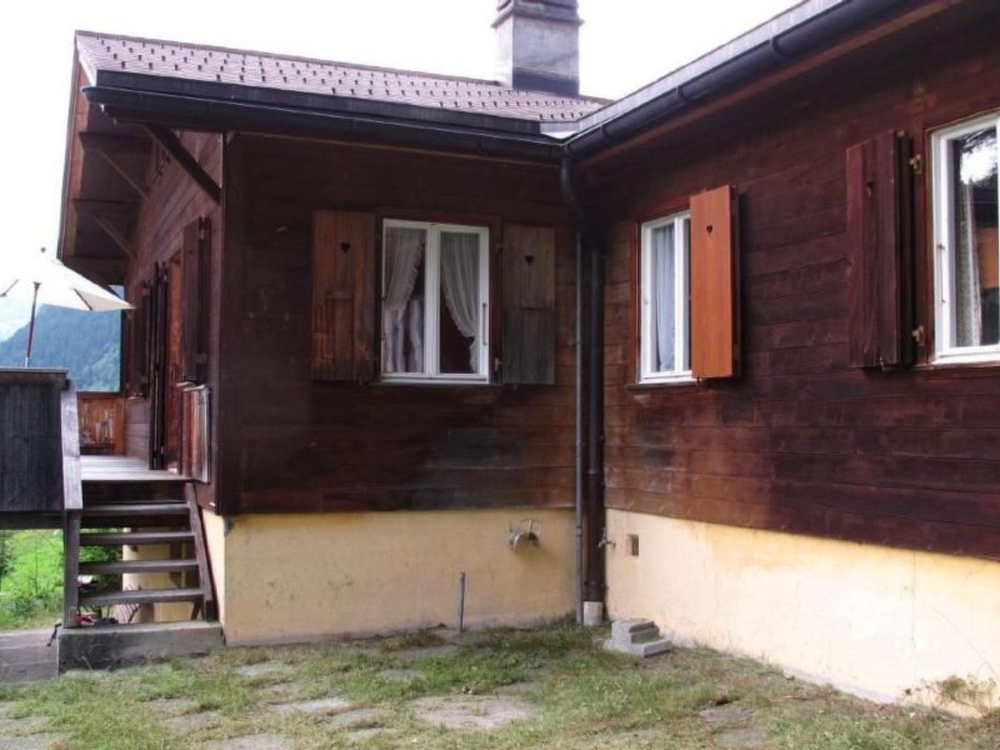 Prächtige Aussicht. Freistehendes Chalet, 2 km westlich vom Dorfzentrum Grindelwald, 1100 m ü. M.). Ruhige Lage; unverbaute Aussicht gegen Süden auf Eigernordwand. Grosse Terrasse und Sitzplatz vor dem Haus