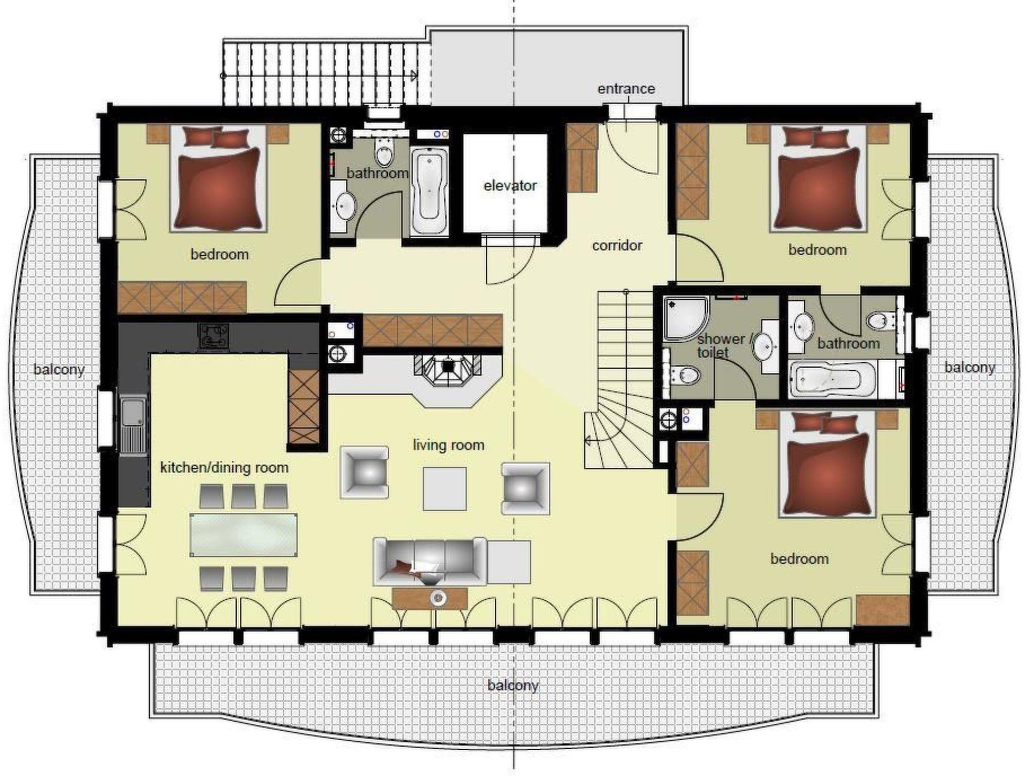 Luxus pur erwartet Sie in der 6.5-Zimmerwohnung auf 266m2, im Dachgeschoss mit Galerie. Die Wohnung im eleganten Alpinlook verfügt über fünf Schlafzimmer mit Doppelbetten, vier davon mit Badezimmer en suite, jeweils mit Badewanne und/oder Dusche und WC und ein separates Badezimmer mit Badewanne und WC. Die Wohnung verfügt über eine offene, sehr gut ausgestattete Küche, die an den grosszügigen Wohn- und Essbereich mit Cheminée anschliesst. Sechs Balkone gehören zur Wohnung – damit haben Sie zu jeder Zeit optimale Aussichten auf die wunderschöne Bergwelt. Mit dem Lift gelangen Sie direkt aus der Tiefgarage in die Wohnung.