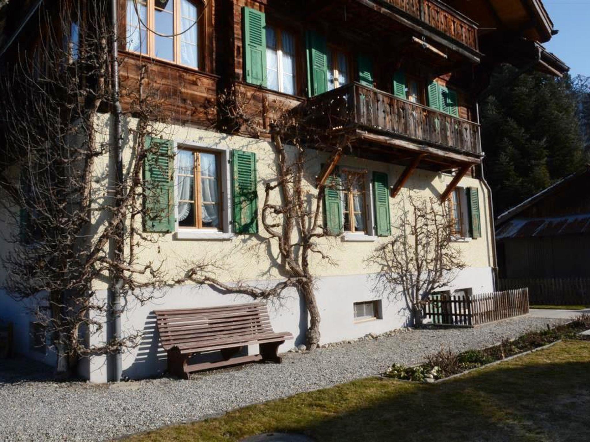 Ein einfach eingerichtetes Doppelschlafzimmer (180x200cm) mit Schrank, ein einfaches Schlafzimmer mit 2 Betten (à 90x200cm). Grosses rustikal möbliertes Wohnzimmer mit typischen Saanen-Schnitzereien, Polstergruppe, Radio/TV/Video und Tisch mit Stühlen. Separate Küche ausgestattet mit Keramik Herd, Geschirrspüler, Backofen, Kühlschrank mit Gefrierfach, Filter-Kaffeemaschine, Fondue-Set, Raclette-Set (auf Anfrage) und Esstisch. Badezimmer mit Badewanne und WC. Nichtraucher-Wohnung! Kinderbett (70x120cm) inkl. Bettwäsche vorhanden.