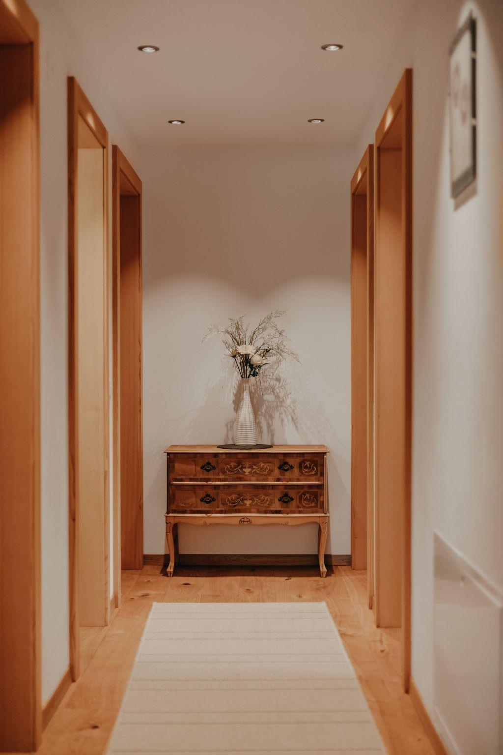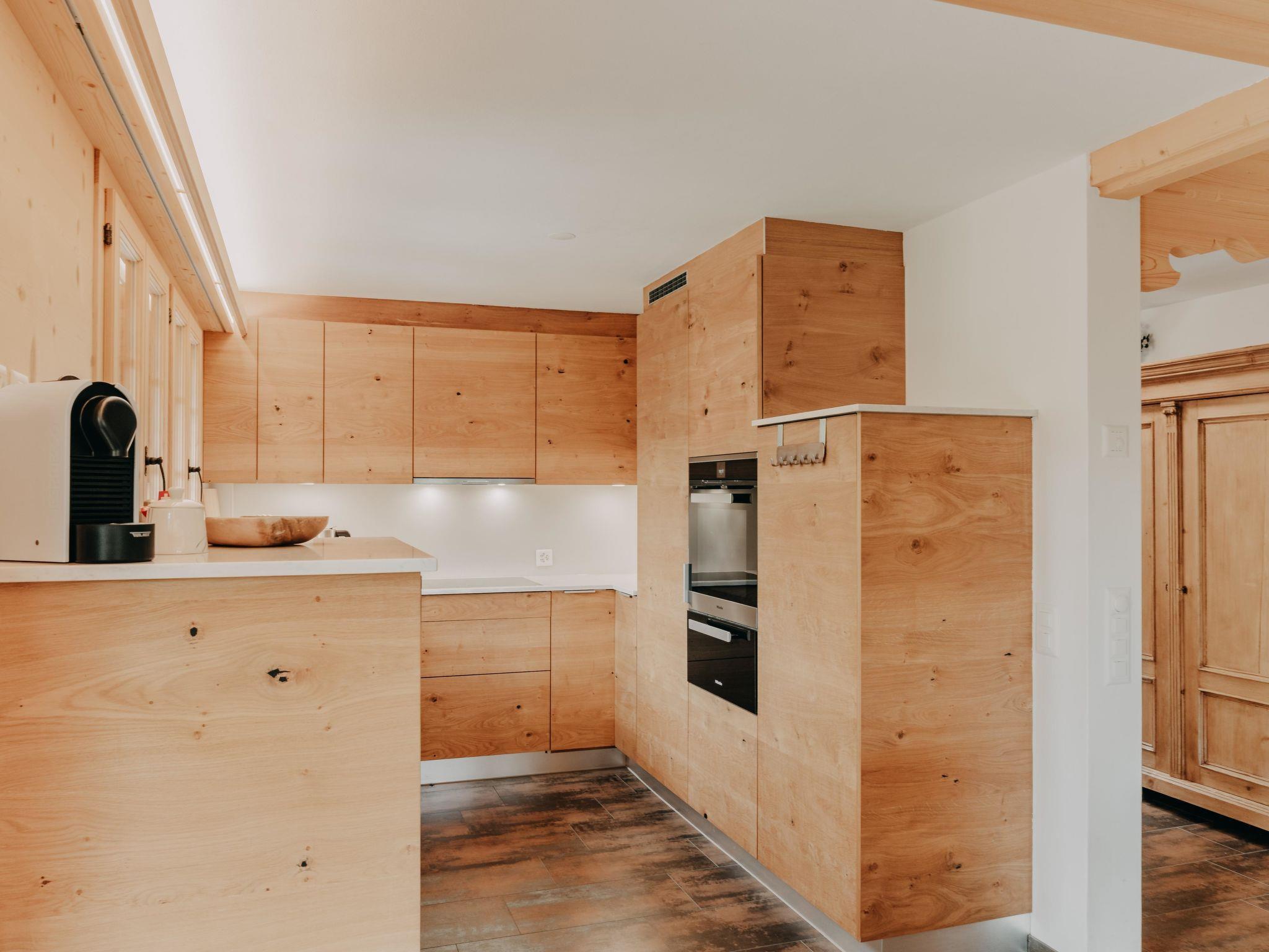Liebevoll, heimelig und stilvoll eingerichtete Wohnung. Helles Wohn-/Esszimmer mit offener Küche (Induktionsherd, Backofen mit Wärmeschublade, grosser Kühlschrank mit Gefrierfach, Geschirrspülmaschine, Kapsel-Kaffeemaschine (Nespresso) sowie Fondue- und Raclette-Set), Esstisch, Schwedenofen, Sitzgruppe und TV. 2 Schlafzimmer mit je 1 Grand Lit (160x200cm). 1 Schlafzimmer mit 1 Kingsize Bett (200x200cm). 1 Badezimmer mit separater Dusche, Badewanne und WC. 1 separates WC. Die ganze Wohnung verfügt über eine in allen Zimmern individuell regulierbare Bodenheizung. WiFi. Die 4-Sterne-Klassifikation der Wohnung bezieht sich nur auf eine Belegung von 4 Personen. Für 6 Personen sind gemäss den Richtlinien vom Schweizer Tourismus-Verband grundsätzlich zwei Nasszellen notwendig.