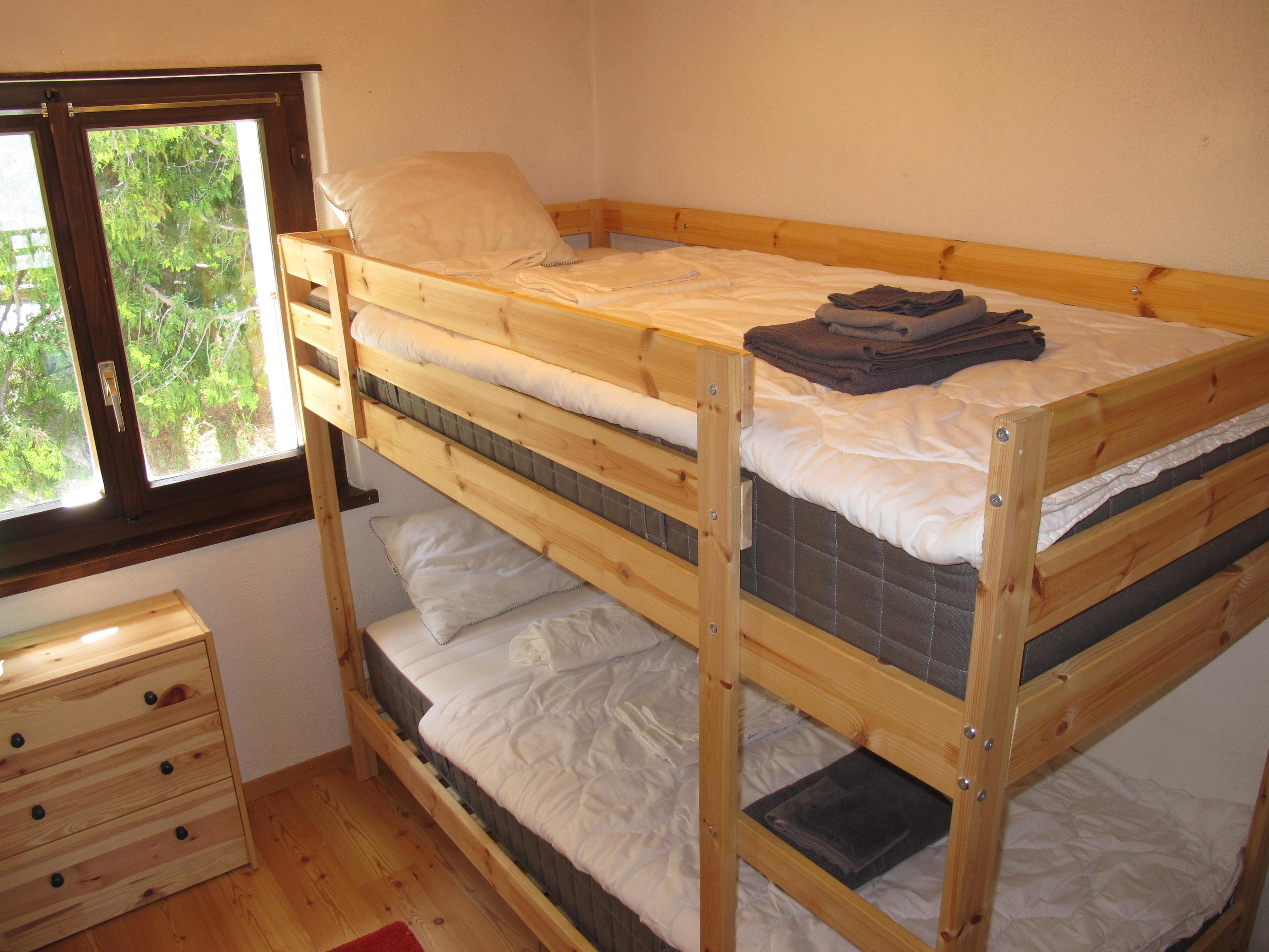Das Chalet wurde innen vor einigen Jahren größtenteils renoviert und es entstand ein hübsches Ferienhaus mit einer gemütlichen und rustikal-behaglichen Wohnatmosphäre. Inmitten des großen Wohnraumes ein imposanter, moderner Kamin (von 2 Seiten mit Glasscheibe, Holz im Supermarkt). Im Chalet vorhanden sind eine Waschmaschine, ein großer Flachbild-TV und Internetempfang als WLAN (kostenlos).Fliesenböden in Küche und Bädern, sonst Dielenböden. Zentralheizung.