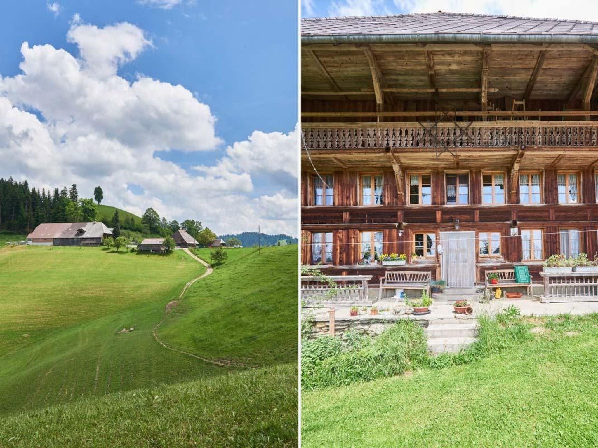 Auf unserem Milchwirtschaftsbetrieb vermieten wir eine 3-Zimmer-Wohnung im ersten Stock des Bauernhauses. Die Wohnung hat einen zugang durch einen nebengang im Haus ,den wir mitbenüzen. Die Wohnung hat ein Wohn-/Schlafzimmer mit 3 Betten und einem Bettsofa, ein 3 Bett Zimmer, ein Esszimmer, eine kleine Kochgelegenheit und Dusche/WC. Nichtraucherwohnung mit zweckmäsiger Einrichtung. Für Kinder hat es viel Platz ums Haus und sind auch im Stall immer willkommen. Wir haben(wenn es schön ist) prächtige Sicht auf die Alpen und gute Wandermöglichkeiten.Wer auch einmal selber mitarbeiten möcht, darf dies natürch. Weil wir auf dem Hügel wohnen, ist ein Auto von Vorteil, wir holen Sie aber gerne vom Bahnhof ab. Da wir selber viele Tiere besitzen, sind bei uns Haustiere nicht erlaubt. Unser Hofhund Alex freut sich immer wieder mit den Gästen einen Spaziergang zu machen.