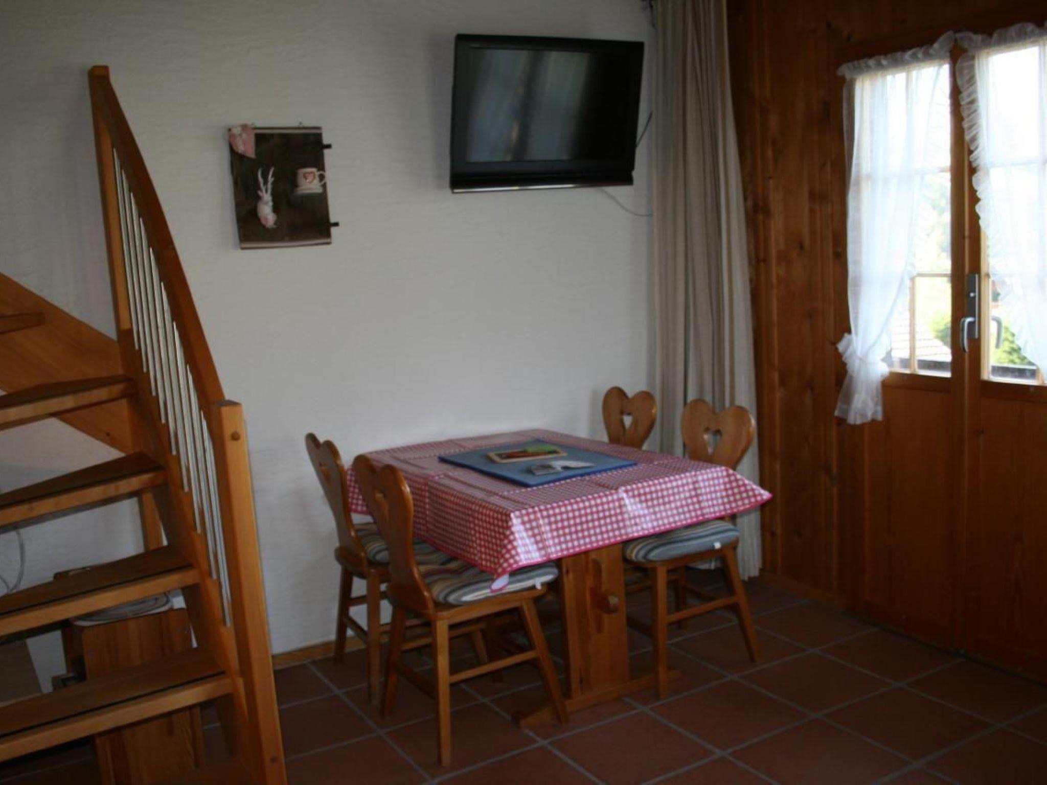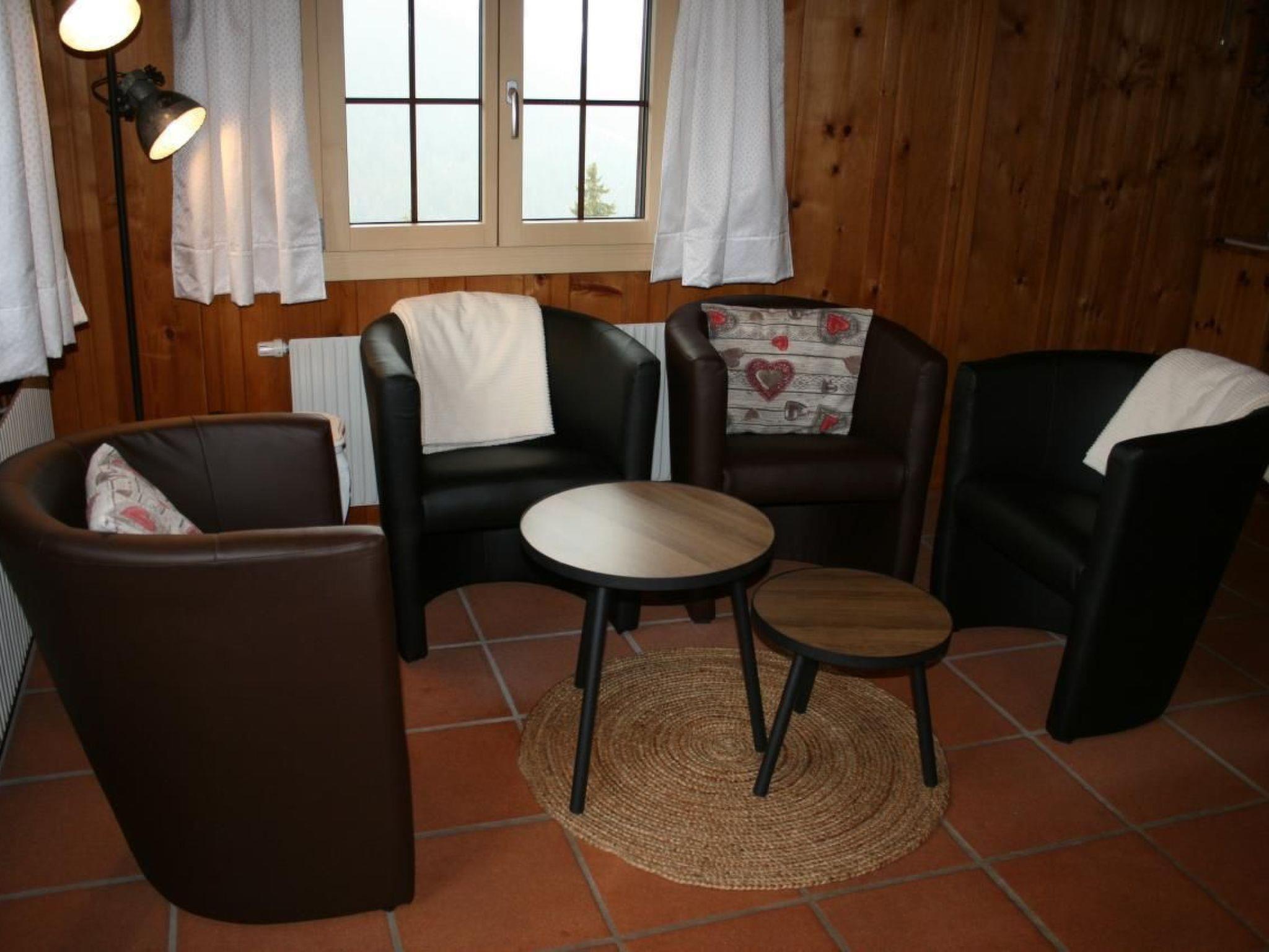Die behagliche Innenausstattung der Ferienwohnung umfasst eine Wohnküche, ausgestattet mit Backofen, Kühlschrank, Toaster, Wasserkocher, Nespresso-Kaffeemaschine, Mixer, Waage sowie Fondue- und Raclettegeschirr für gemütliche Abende. Entspannen Sie im Wohnbereich mit bequemen Stühlen, nutzen Sie den TV oder das W-LAN für Unterhaltung und Information. Das Schlafzimmer bietet ein komfortables Bett in der Größe von 160x200 cm, und im ausgebauten Estrich finden sich zusätzliche Matratzen für ein gemeinschaftliches Lager. Das Bad ist mit WC und Dusche ausgestattet.