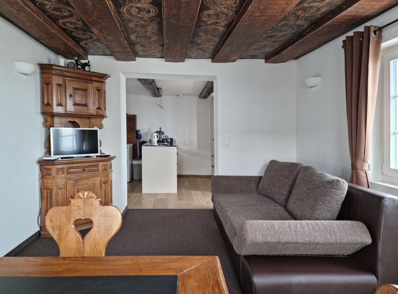 In einem historisch wertvollen Haus befindet sich die heimelige, grosszügige und mit allem Komfort ausgestattete 2-Zimmer-Wohnung. Das Haus liegt in direkter Nähe zum See, mit einmaliger Aussicht.
