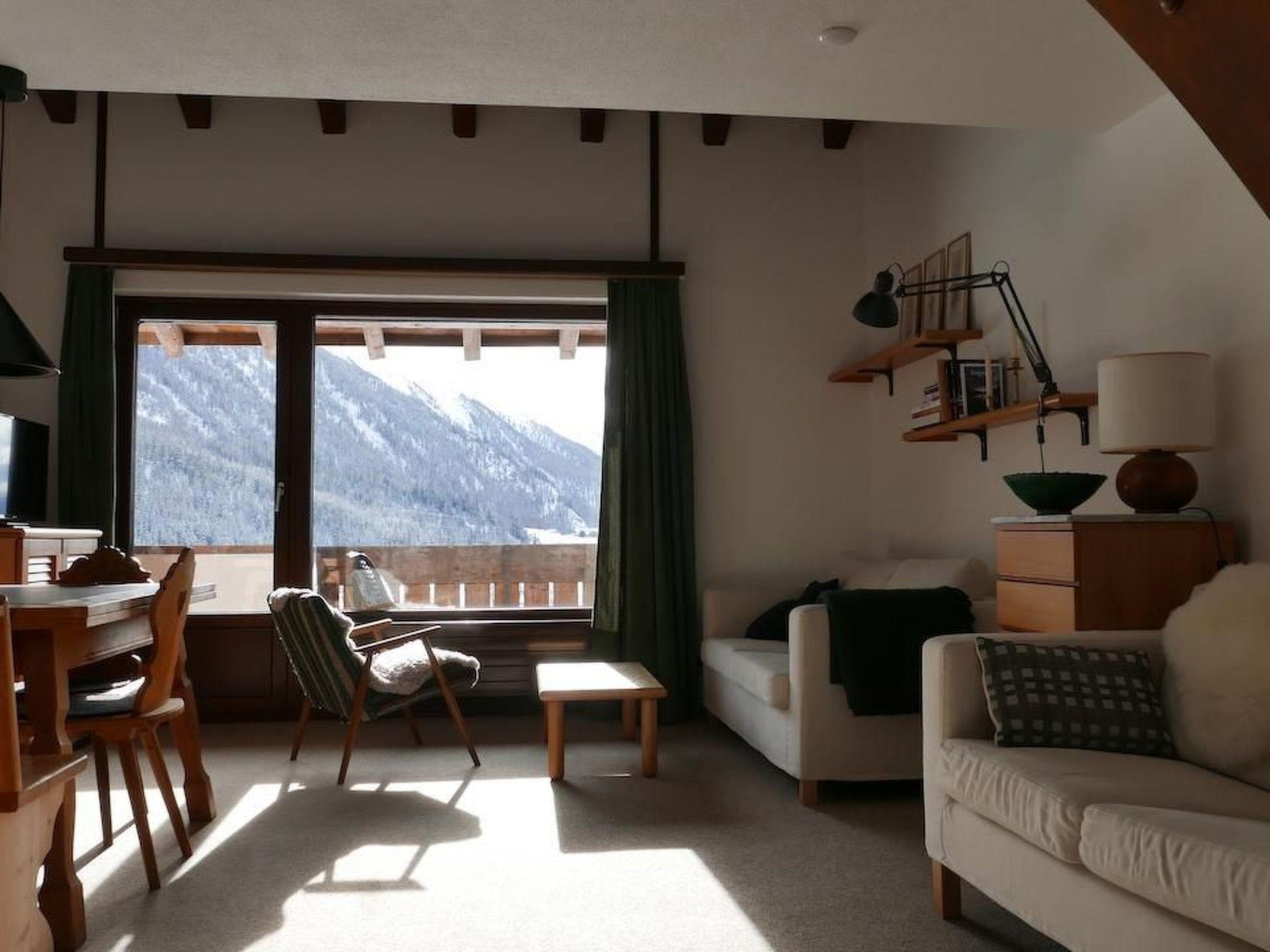Gemütliche 2 Zimmer-Wohnung Duplex-Wohnung. Die Duplex-Wohnung im 1. Obergeschoss verfügt über ein gemütliches Wohnzimmer mit Essecke, gut eingerichteter offene Küche (4 Plattenherd, Backofen, Kühlschrank mit Gefrierfach, Geschirrspülautomat), Schränke, Bad/WC, Balkon mit herrlicher Aussicht.
