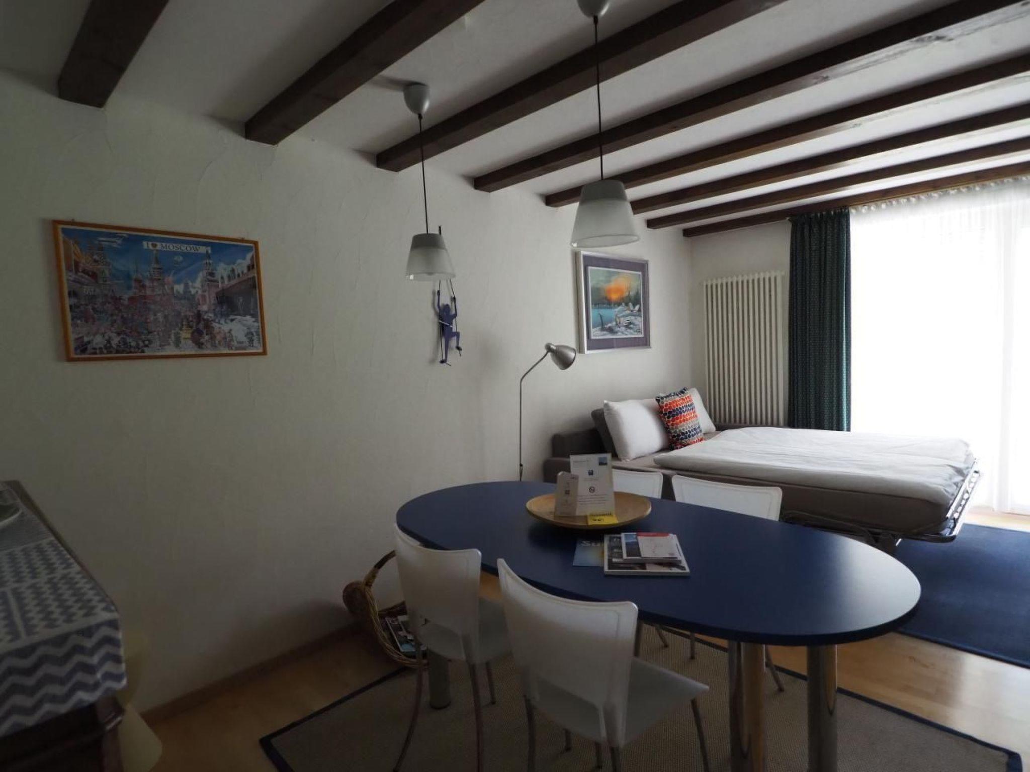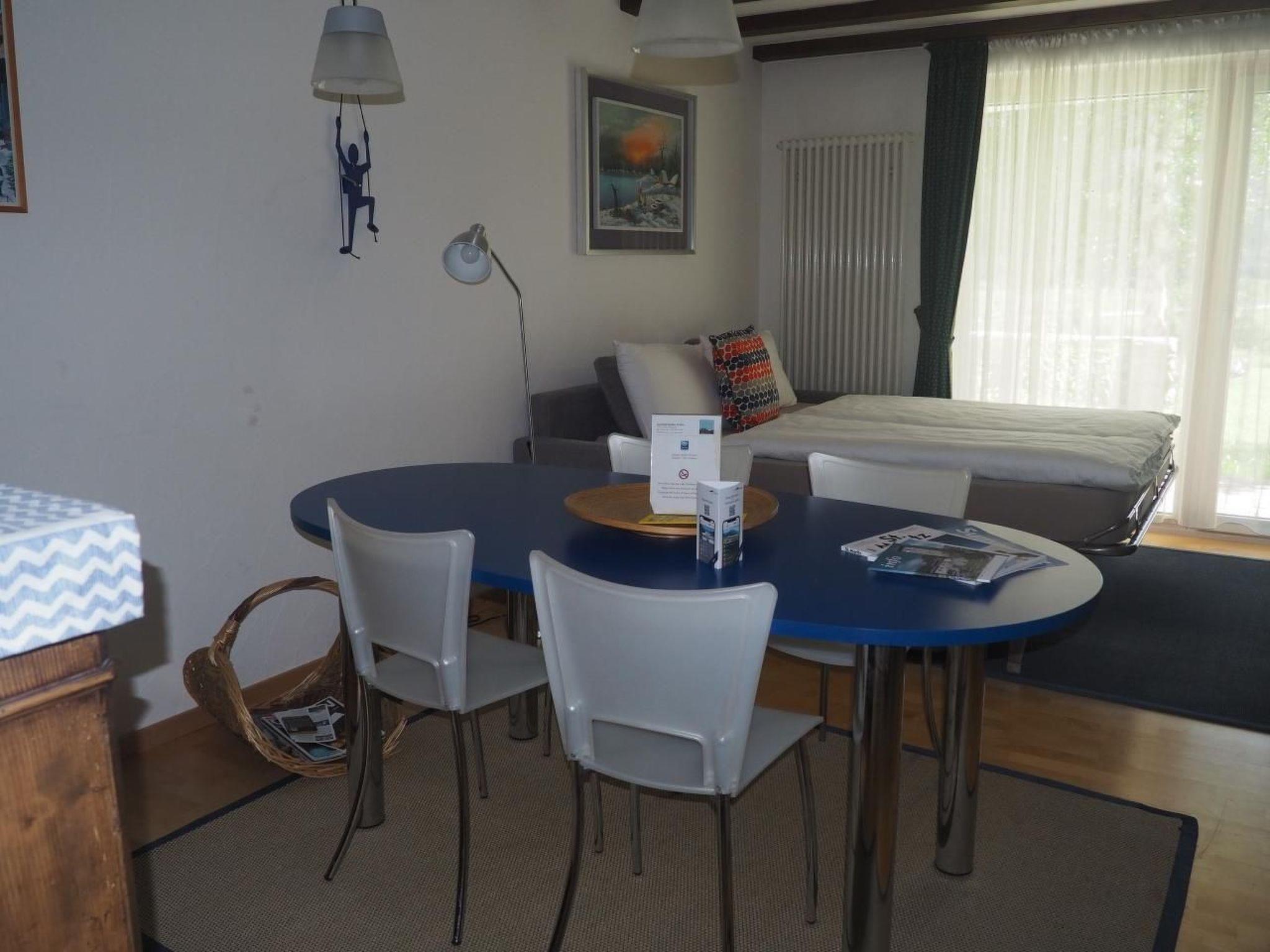 Es handelt sich um eine geschmackvoll möblierte 1.5 Zimmer-Parterre-Wohnung in einer Apartment- Siedlung in La Punt Chamues-ch an einer ruhigen und sehr sonnigen Lage mit unverbaubarer Aussicht. Die Wohnung im Erdgeschoss verfügt über einen gemütlichen Wohn-/Schlafraum mit Essecke, Cheminée, gut eingerichtete offene Küche, ein kleines Zimmer mit Etagenbett, Bad/WC, Gartensitzplatz, Autoeinstellplatz. *4 Plattenherd, Backofen, Kühlschrank mit Gefrierfach, Geschirrspülautomat. Hunde nur auf Anfrage.