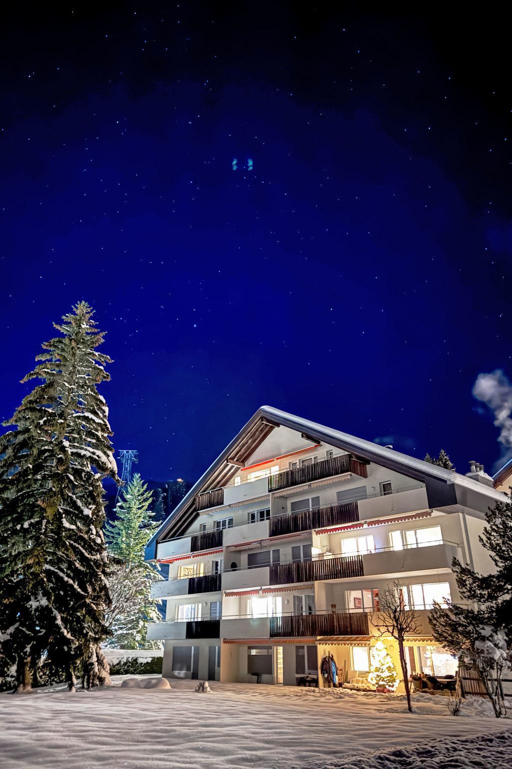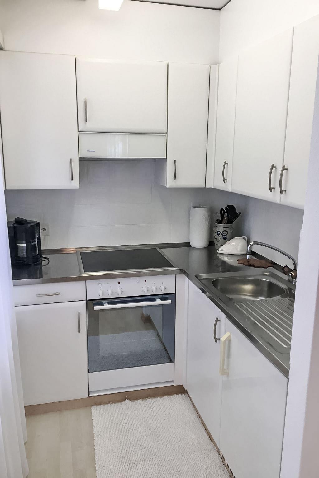 1-Zimmer-Wohnung 32 m2, Nordwestlage. Komfortabel und gemütlich eingerichtet: Wohn-/Esszimmer mit 2 Wandschrankbetten und Sat-TV (Flachbildschirm), Radio und CD. Ausgang zum Balkon. Kochnische (Backofen, 4 Glaskeramikplatten) mit Esstisch. Bad/WC. Kleiner Balkon, Nordlage und Westlage. Eingeschränkte Sicht auf die Berge und die Landschaft. Zur Verfügung: Internet (Wireless LAN, gratis). Garage Nr. 7-5 beim Haus, Höhe 194 cm. Bitte beachten: Nichtraucher-Unterkunft. Im Winter keine Skis und Skischuhe in der Wohnung erlaubt.
