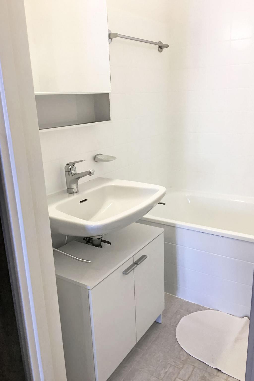 2-Zimmer-Wohnung 50 m2 im 1. Stock, Südlage. Hell, komfortabel und gemütlich eingerichtet: offenes grosses Wohn-/Schlafzimmer mit 1 Doppelwandschrankbett (2 x 90 cm, Länge 200 cm), Esstisch, Sat-TV und Flachbildschirm. Ausgang zum Balkon. 1 Doppelzimmer mit 1 Bett (90 cm, Länge 200 cm), 1 Doppelbett (2 x 90 cm, Länge 200 cm). Ausgang zum Balkon. Offene Küche (Geschirrspüler, 4 Glaskeramikplatten, Fondue Set (Käse)). Bad/WC. Balkon 14 m2. Schöne Sicht auf die Berge und die Landschaft. Zur Verfügung: Kinderhochstuhl. Internet (Wireless LAN, gratis). Garage Nr. 7-6 beim Haus, Höhe 194 cm. Bitte beachten: Nichtraucher-Unterkunft. Im Winter keine Skis und Skischuhe in der Wohnung erlaubt. 571 687.68.266.151