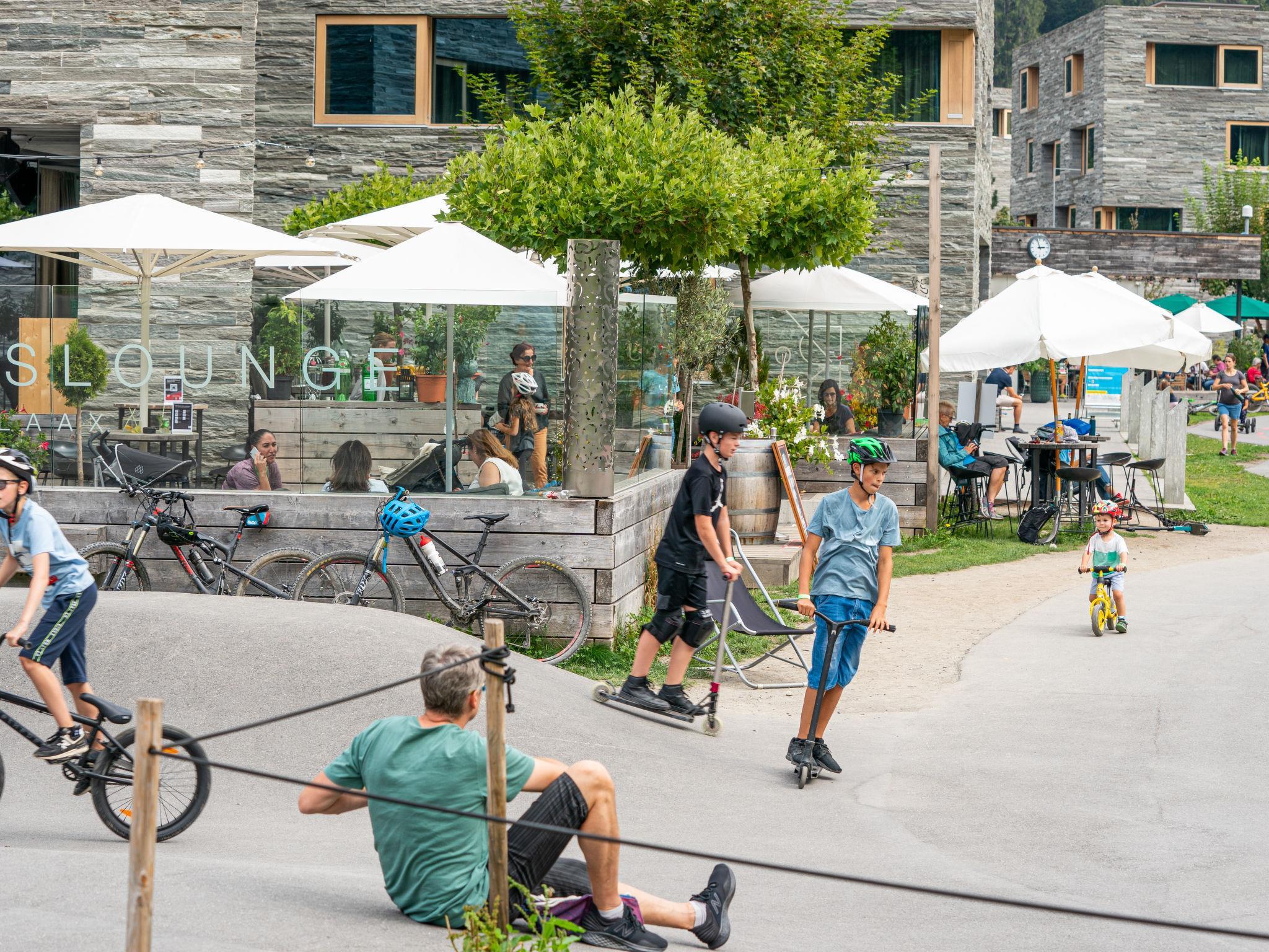 Kinderfreundliche, moderne, komfortable Ferienanlage "rocksresort", 1'100 m.ü.M., Baujahr 2009. 11 Häuser im Ferienresort. Im Ort Laax-Murschetg, zentrale, sonnige Lage, 50 m vom Skigebiet. In der Anlage: Empfang, Restaurant, Bar, Wellnessbereich (extra), Einkaufsmöglichkeit, Boutique, Fahrstuhl, Einstellraum für Fahrräder, Skiraum, Zentralheizung, Waschmaschine, Wäschetrockner (zur Mitbenutzung, extra). Wäschewechsel (zusätzlich extra). Wohnungsreinigung täglich möglich (extra). Frühstück möglich auf Anfrage (extra). Einkaufsservice vor Anreise möglich. Zufahrt bis zum Grundstück. Gemeinschaftsgarage (extra). E-Ladestation. Lebensmittelgeschäft 100 m, Restaurant, Bar 50 m, Bushaltestelle 100 m. Golfplatz (18 Loch) 5 km, Luftseilbahn, Skilift, Skipisten, Skiverleih 50 m, Skischule 50 m, Schlittelbahn 50 m, Langlaufloipe 100 m, Kinderspielplatz 50 m. Nahe gelegene Sehenswürdigkeiten: Bikerouten & Wandewege 50 m, Klettersteig Pinut 6.5 km, Rheinschlucht 16 km, Baumwipfelpfad 50 m. Bekannte Skigebiete sind gut erreichbar: Weisse Arena Flims/Laax 50 m. Bekannte Seen in der Umgebung sind gut erreichbar: Laaxersee 2.2 km, Caumasee 4 km, Crestasee 6.5 km. Wandergebiete: Planetenlehrpfad Falera-Laax-Falera 1.5 km, 659 Senda Ruinaulta 2.5 km, Bergwanderroute Unterer Segnesboden 7 km. Bitte beachten: Bei guter Schneelage Zufahrt mit den Skiern bis zum Haus. schliessbare Skidepotkästen in der Anlage.