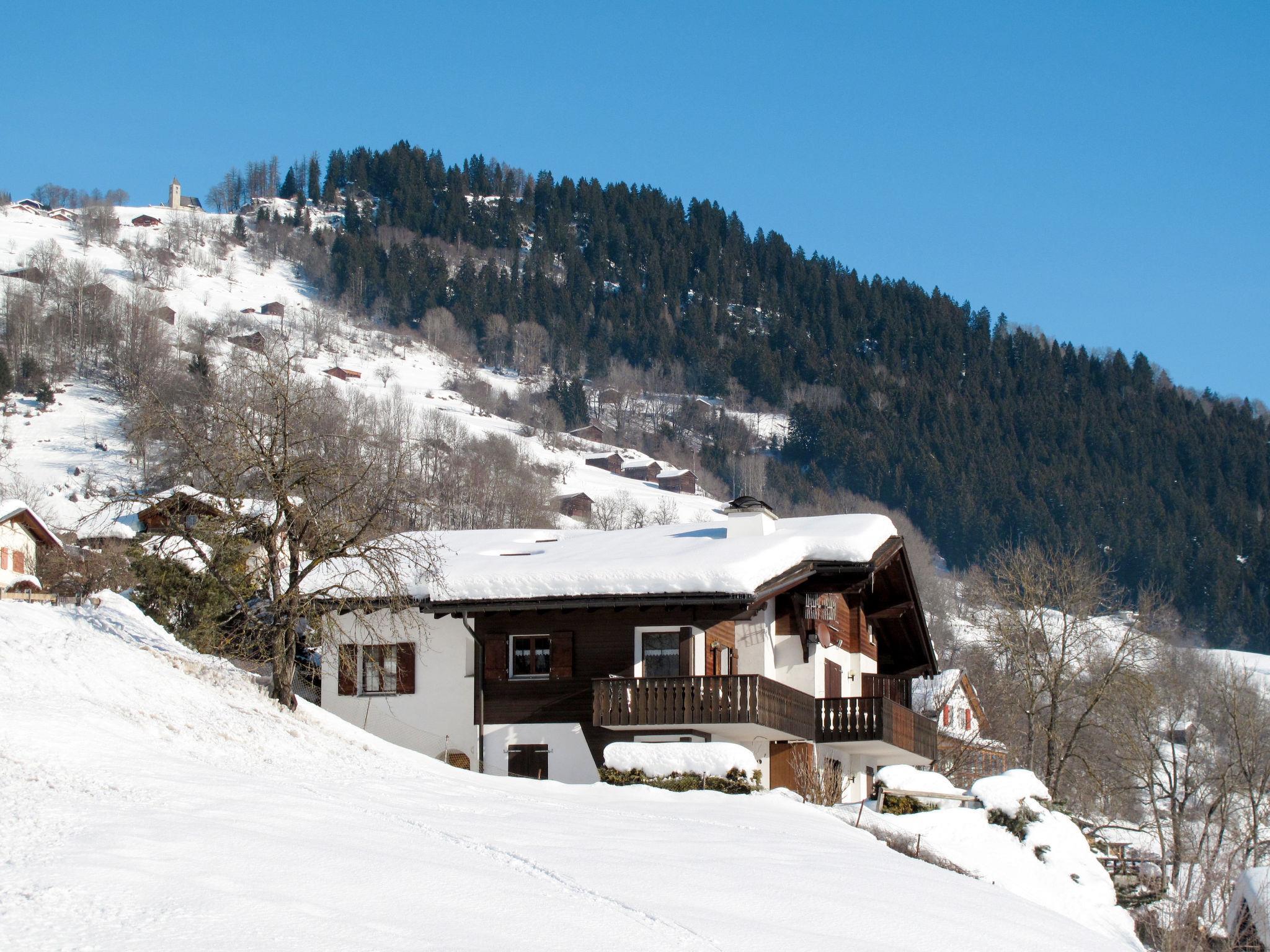 Schluein 4 km von Laax: Gemütliches Mehrfamilienhaus "Muotta Sulegl", 770 m.ü.M., auf 3 Stockwerken. Im Ort, 400 m vom Zentrum von Schluein, ruhige, sonnige Lage am Hang, 6 km vom Skigebiet. Im Hause: Sauna (extra). Skiraum, Zentralheizung. Zufahrt bis zum Haus. Treppenweg bis zum Haus. Parkplatz beim Haus. Einkaufsgeschäft 2.8 km, Supermarkt 2 km, Restaurant 400 m, Bushaltestelle "Schluein, vitg" 250 m, Bahnstation "Ilanz" 2.8 km. Golfplatz (9 Loch) 5 km, Luftseilbahn 6 km, Skilift 6 km, Sessellift 6 km, Skisportanlagen 6 km, Skipisten 6 km, Skibushaltestelle 350 m, Skischule 6 km, Schlittelbahn 6 km, Langlaufloipe 5 km. Nahe gelegene Sehenswürdigkeiten: Rheinschlucht 6 km. Bekannte Skigebiete sind gut erreichbar: Weisse Arena Flims/Laax 6 km. Bekannte Seen in der Umgebung sind gut erreichbar: Caumasee 10 km.