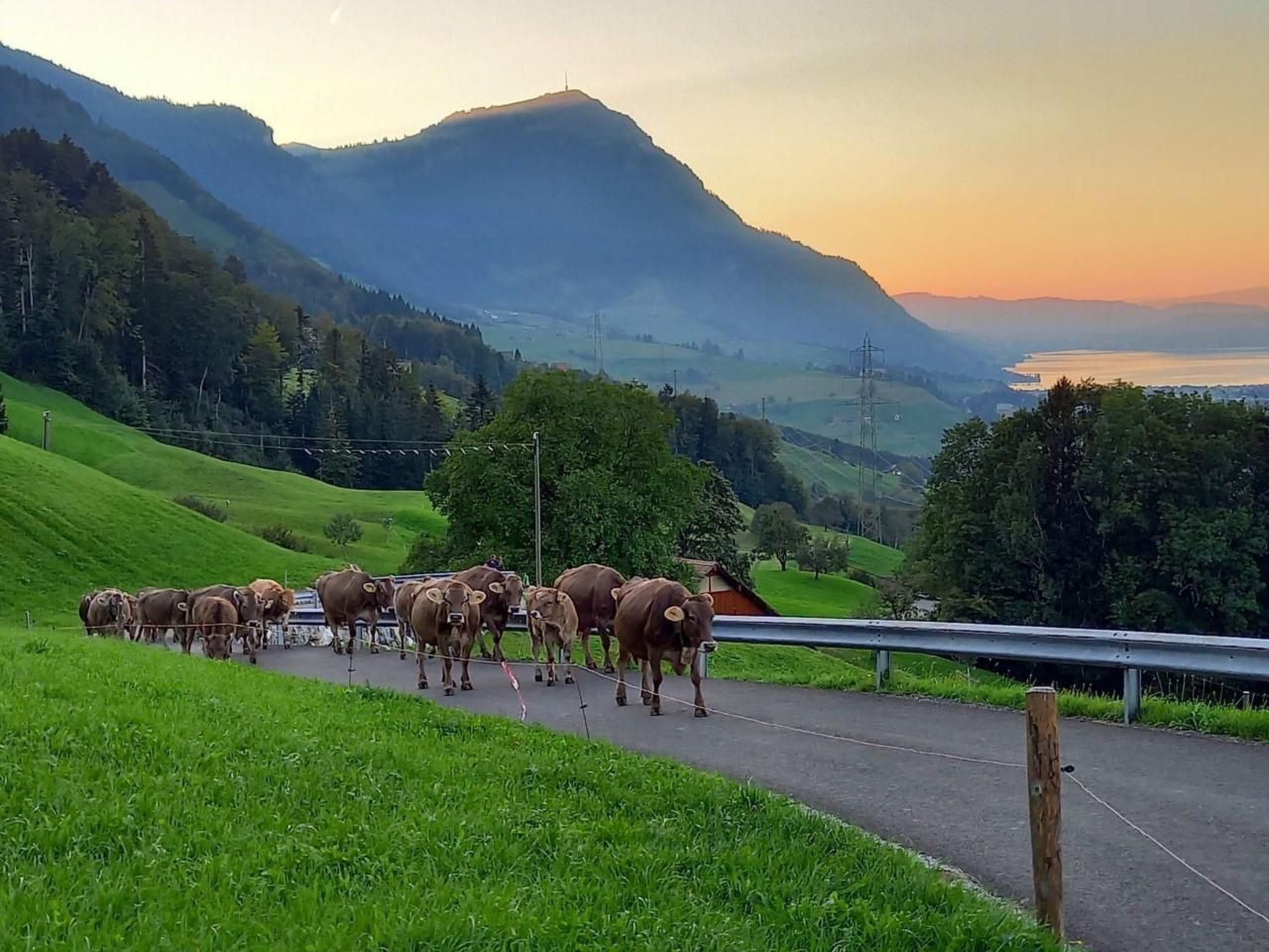 Entdecken Sie den idyllischen Charme unseres Bauernhofs, gelegen 3km oberhalb des malerischen Lauerz. Mit einer atemberaubenden Aussicht auf die umliegenden Berge und Seen, bietet unsere Ferienunterkunft einen einzigartigen Ort der Ruhe und Erholung. Umgeben von Mutterkühen mit ihren Kälbern, Engadinerschafen,Ziegen und einer Schar an Hühner, sind Sie herzlich eingeladen, das wahre Landleben in all seiner Pracht zu erleben.