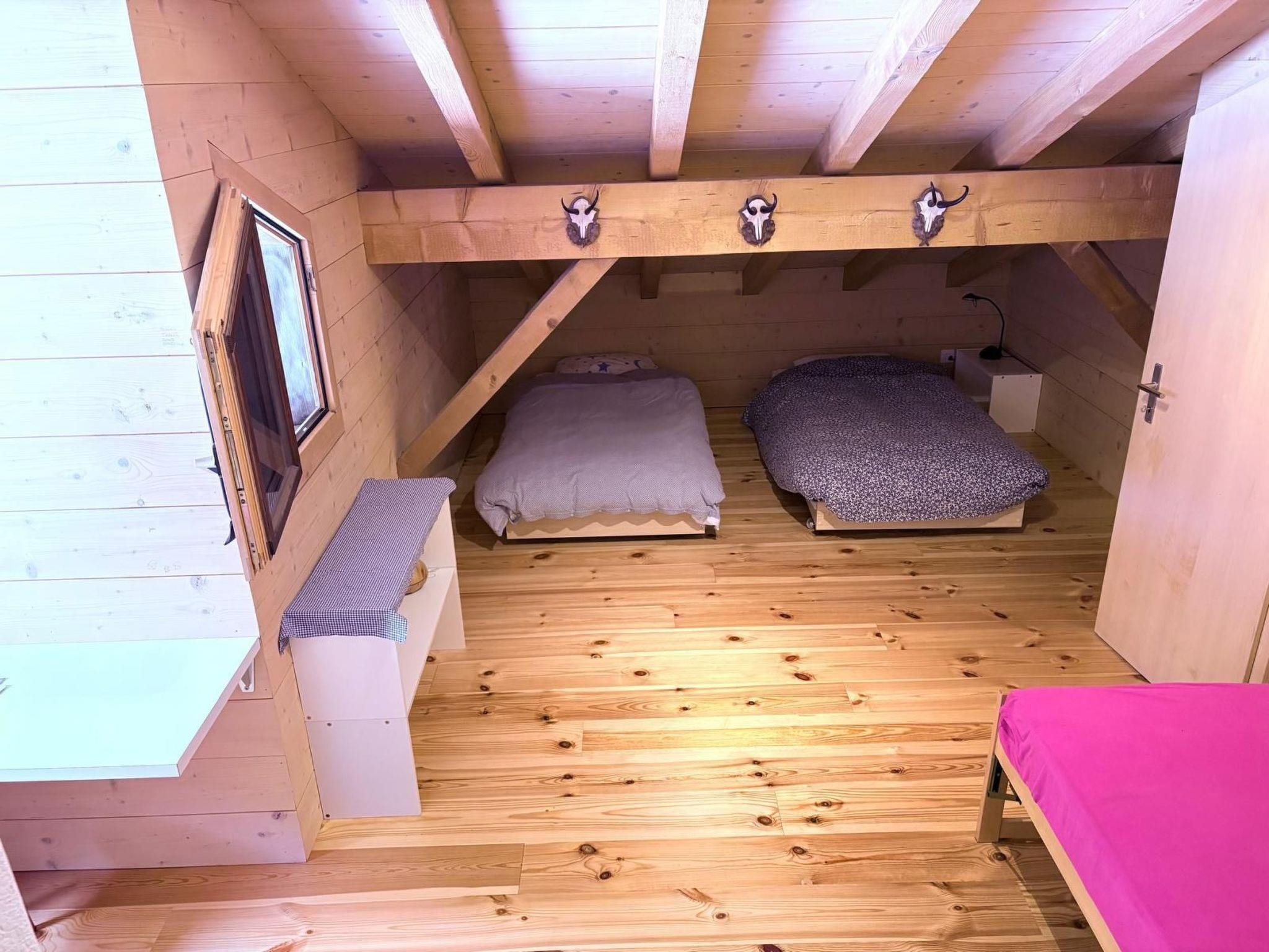 - Galerie mit 2 Einzelbetten (ACHTUNG: die Gallerie liegt über dem Wohnzimmer - entsprechend kann man hier nicht ganz abdunkeln und ist auch nicht abschliessbar - offener Bereich)