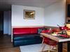 Im Wohnraum erwartet Sie ein bequemes Ledersofa und ein HD-TV-Gerät mit Radioempfang. WLAN steht kostenfrei zur Verfügung. Am Esstisch haben bequem 4 Personen Platz und können die Aussicht auf die Berge geniessen.