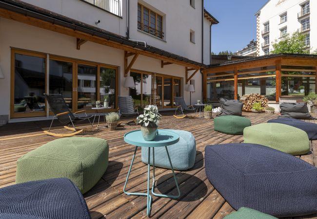Die im Ortskern Lenzerheide gelegene 2.5 Zimmer-Ferienwohnung mit ca. 70 m² befindet sich im Erdgeschoss des sehr ruhig gelegenen Gebäudeteils 6 des Hotel Schweizerhof, mit direktem Zugang zu Wellness, Tiefgarage sowie direktem Ausgang auf die Langlaufloipe. Ideal ist die Lage der Wohnung auch durch die kurzen Wege zu Restaurants, zum Dorfleben und Einkaufen, sowie zum hoteleigenen Schwimmbad- und Wellnessbereich des Hotels Schweizerhofs.