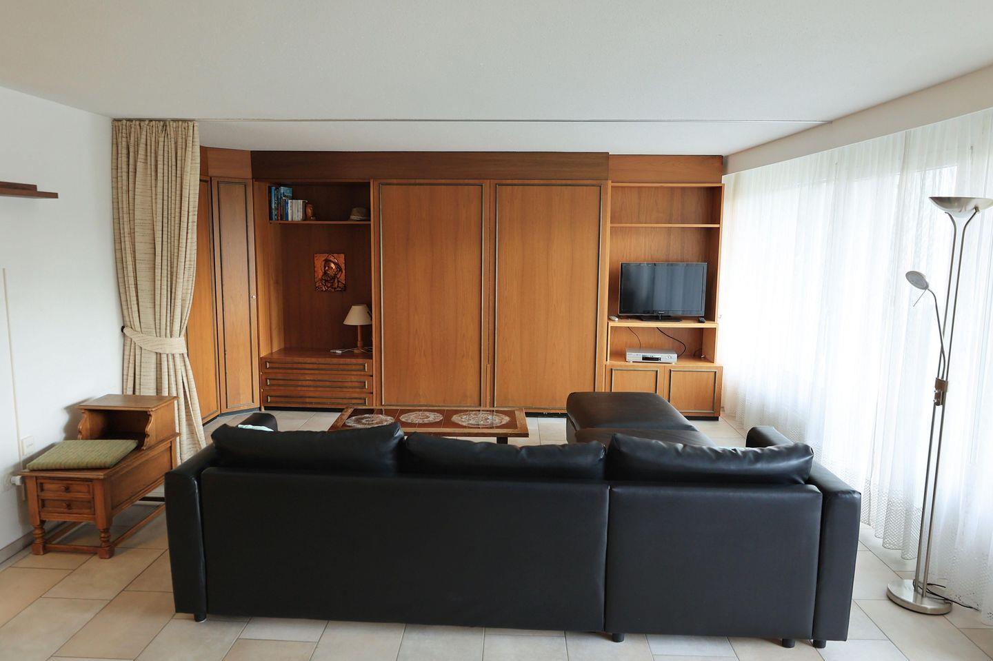 Wohn- / Esszimmer mit TV/Radio, Sitzgruppe, Esstisch und 2 Wandklappbetten