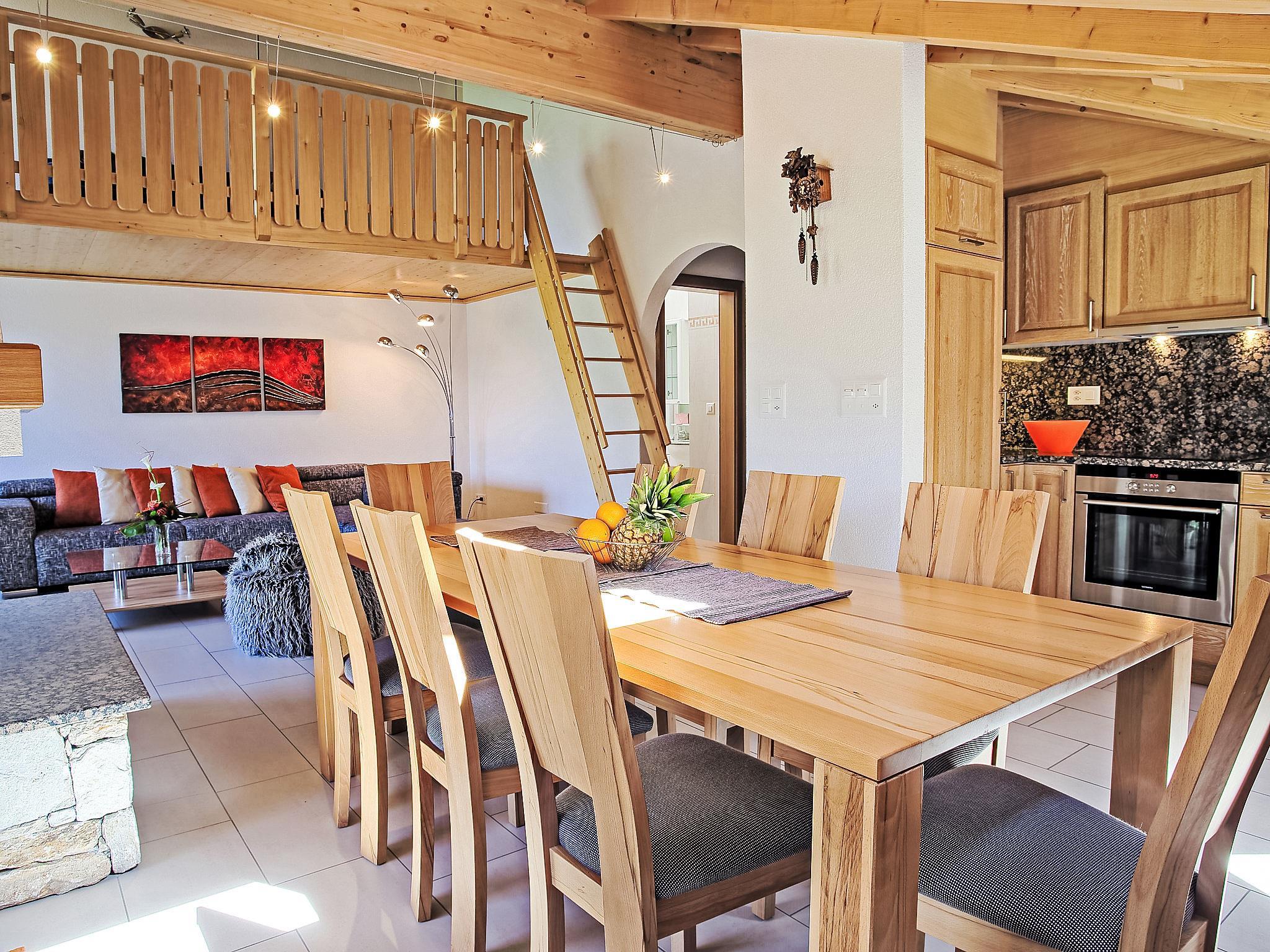 3-Zimmer-Attikawohnung 98 m2 auf 2 Stockwerken im 4. Stock. Komfortabel und geschmackvoll eingerichtet: Wohn-/Esszimmer mit offenem Kamin und Kabel-TV (Flachbildschirm), Stereoanlage und DVD. Ausgang zum Balkon, Richtung Süden. 1 abgeschrägtes Zimmer mit 1 Doppelbett, Bad/Bidet/WC und Kabel-TV (Flachbildschirm). 1 Zimmer mit 2 Betten. Offene Küche (Backofen, Geschirrspüler, 4 Glaskeramikplatten, Mikrowelle, elektrische Kaffeemaschine). Dusche/WC. Obergeschoss: (Leiter) offene Galerie mit 2 Betten. Terrassenmöbel. Sehr schöne Sicht auf die Berge und die Landschaft. Zur Verfügung: Kinderhochstuhl, Babybett. Internet (WLAN, gratis). Parkplatz (überdacht). Bitte beachten: Nichtraucher-Unterkunft. Anstelle eines abgeschlossenen Schlafzimmers befinden sich manche Schlafplätze in einem offenen Bereich (Galerie, Nische etc.).