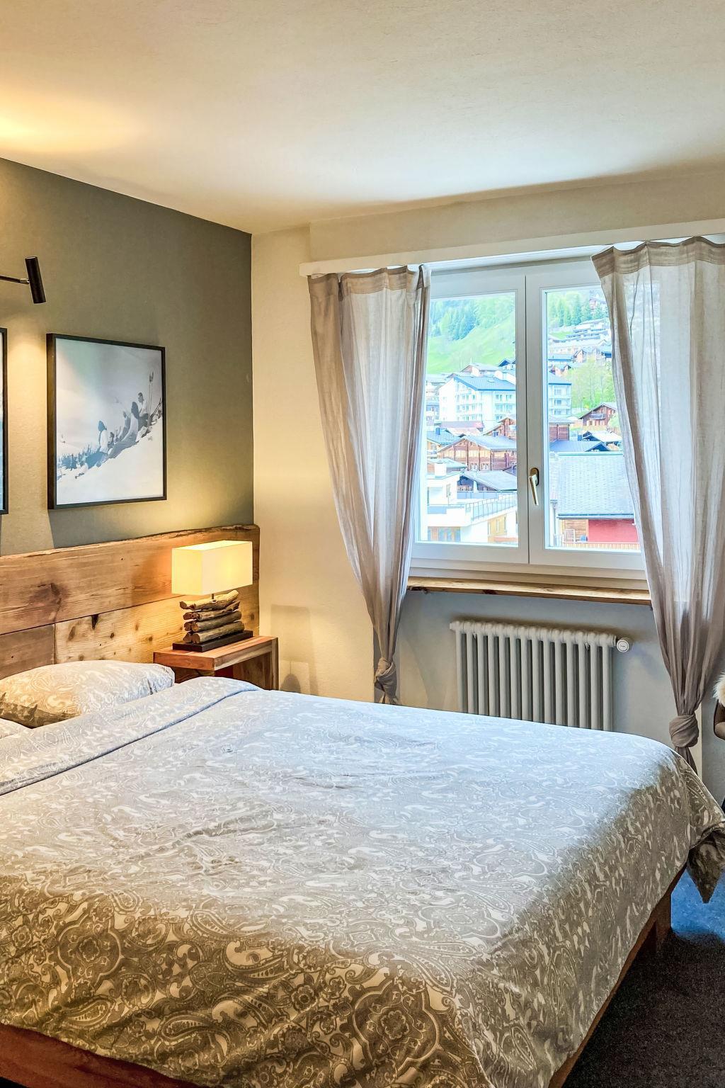 "Dala", 3-Zimmer-Wohnung 60 m2 im 3. Stock. Hell, vollständig renoviert im Jahre 2023, schön und gemütlich eingerichtet: Wohn-/Esszimmer mit 1 Diwanbett (140 cm, Länge 200 cm), Essecke und Digital-TV. Ausgang zum Balkon. 1 Doppelzimmer mit 1 Doppelbett (160 cm, Länge 200 cm). 1 Zimmer mit 1 Bett (90 cm, Länge 200 cm), 1 Doppelbett (1 x 140 cm, Länge 200 cm). Grosse Küche (Backofen, Geschirrspüler, 4 Glaskeramikplatten, Toaster, Wasserkocher, Mikrowelle, Tiefkühler, elektrische Kaffeemaschine). Ausgang zum Balkon. Dusche/WC. 2 Balkone. Balkonmöbel. Schöne Sicht auf die Berge und die Ortschaft. Zur Verfügung: Internet (WLAN, gratis). Bitte beachten: Nichtraucher-Unterkunft.