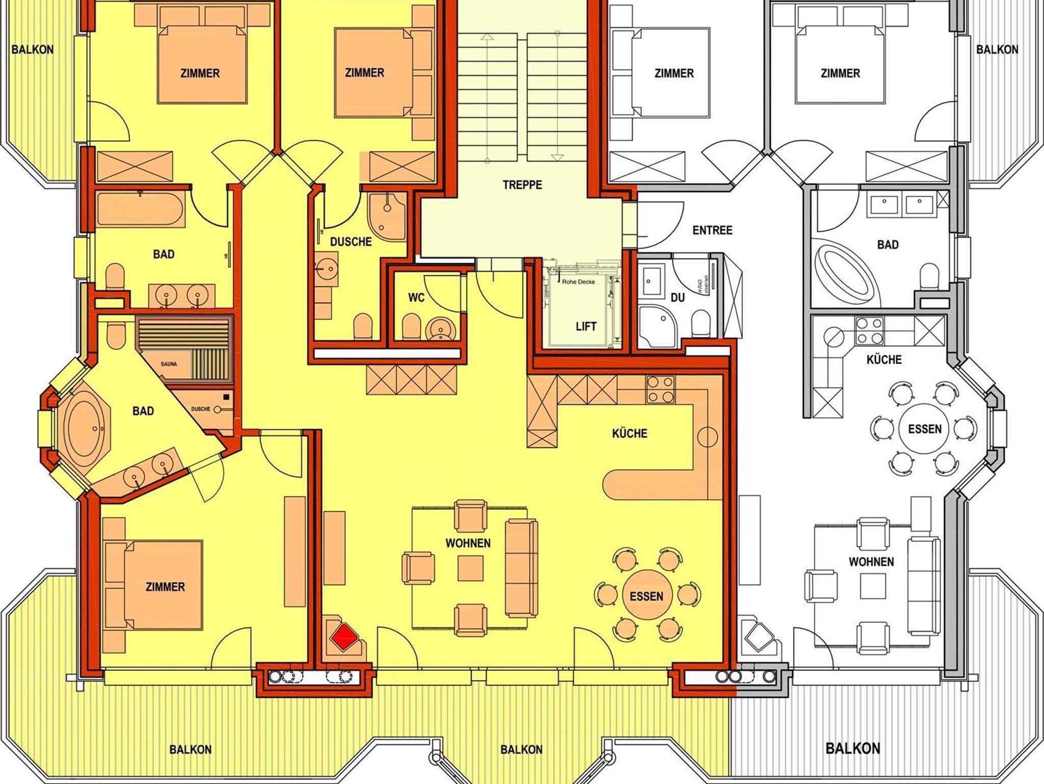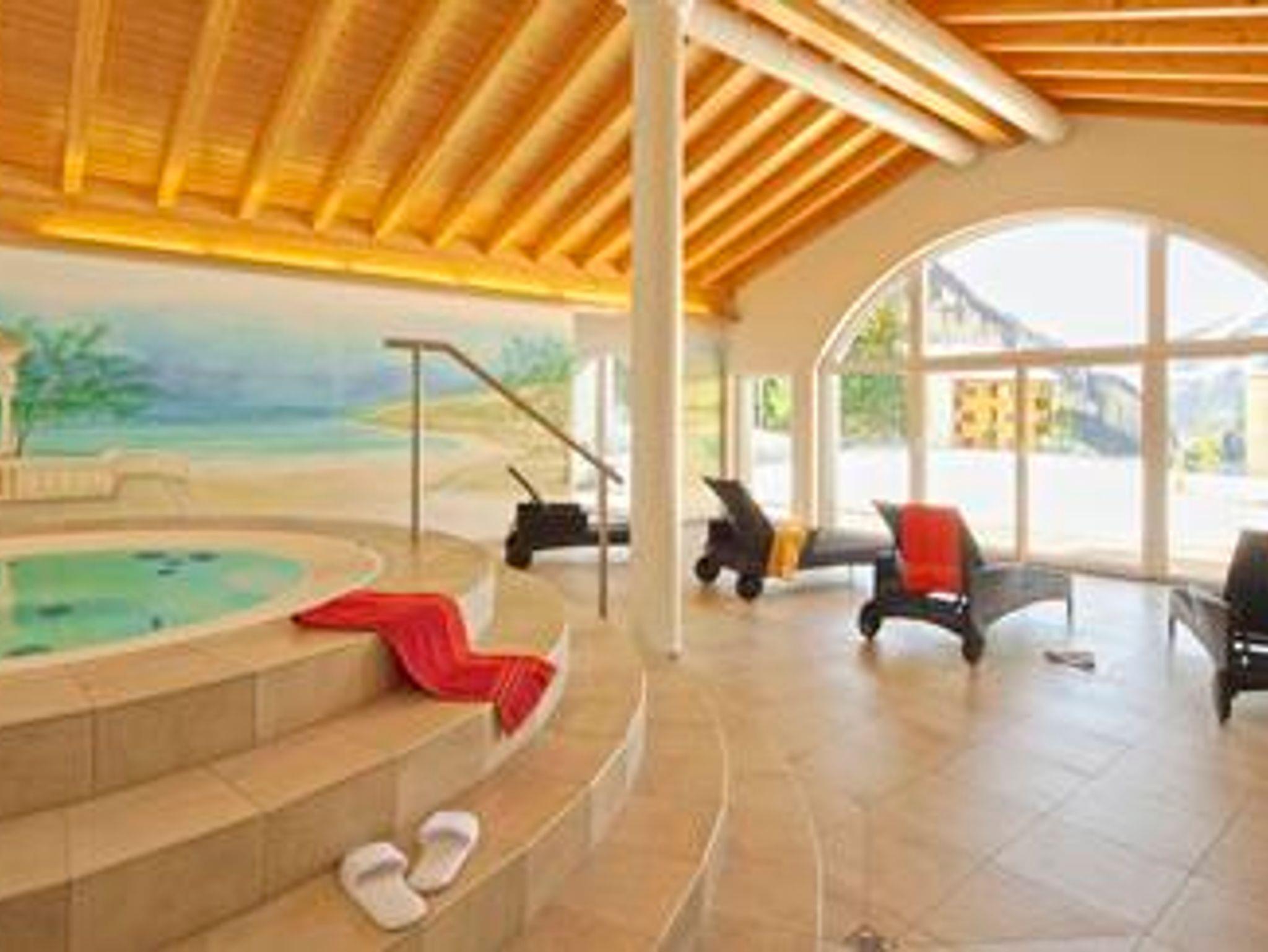 Luxuriöse 4-Zimmerwohnung (138m2) in modernem Neubau, mit hausinternem Wellnessbereich (Whirlpool, Dampfbad, Sauna, Solarium, Kneippkur, Fitness- und Ruheraum). Wohn-/Essraum mit Cheminée, DVD, gratis WiFi, Radio, TV. Offene Küche mit Geschirrspüler & Mikrowelle. 3 Doppelzimmer; 1 x mit grossräumigem Bad/Dusche/WC mit Whirlpool und eigener Sauna, 1 x mit Dusche/WC, 1 x mit Bad/WC, zusätzlich separates WC, grosser Süd-Balkon (36m2). 2 benachbarte Garagenplätze im Haus inklusive. Haustiere nicht erlaubt! Nichtraucherwohnung!