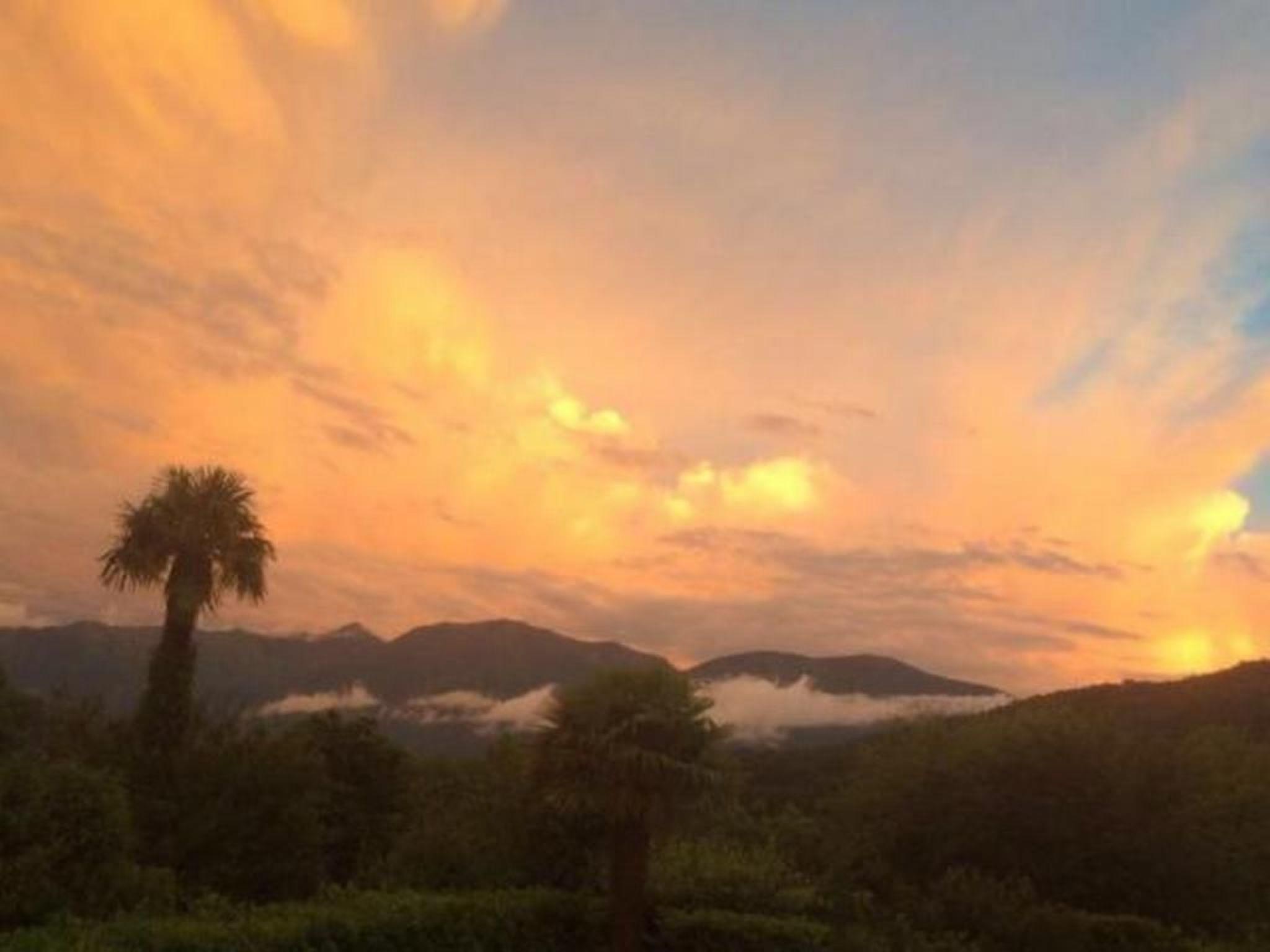 Unsere Gäste geniessen auf der Terrasse/ Balkon mit Esstisch, Stühlen und Liegen oder im Garten die Ruhe und den Blick auf die Berge gegenüber des Lago Maggiore. Oder sie ziehen sich mit einem der vielen Büchern aus der Bibliothek in einen der bequemen Sesseln im Wohnzimmer zurück.