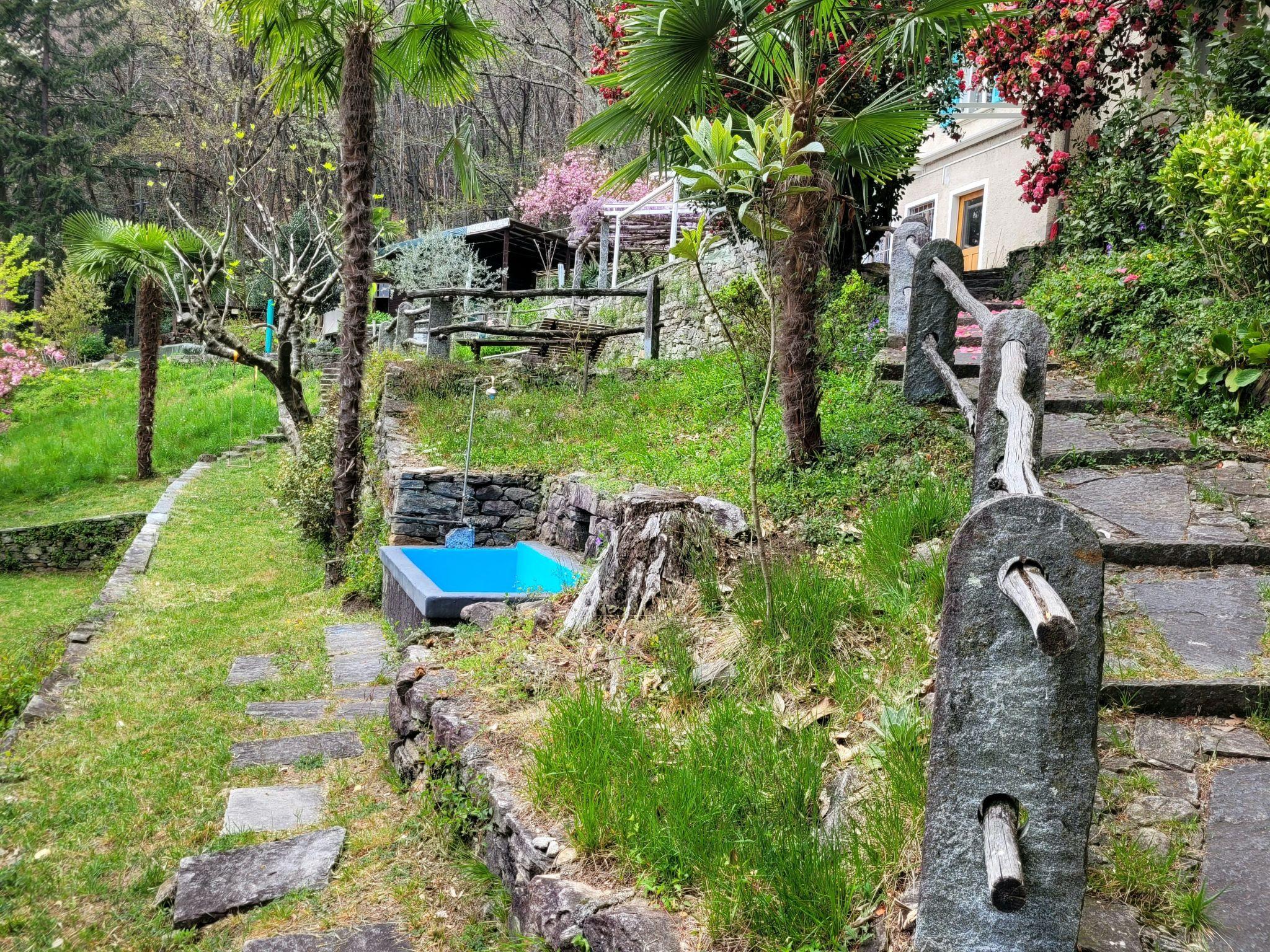 Das Besondere an La Pineta ist die Ruhe und die unmittelbare Natur. Bei schönem Wetter (und das gibt es oft im Tessin) spielt sich das Leben vor allem auf der grossen Terrasse ab, auf der ein großer Tisch mit Bänken steht. Hier lassen sich wunderbare Stunden gemeinsam verbringen. Ein Holzkohlegrill ist vorhanden. Wenn es dann einmal zu heiss wird, lädt die grosse unter Palmen gelegene Badewanne zu einem kühlen Bad ein. Und am späten Abend oder in der Nacht kommen dann manchmal Wildtiere auf Besuch.