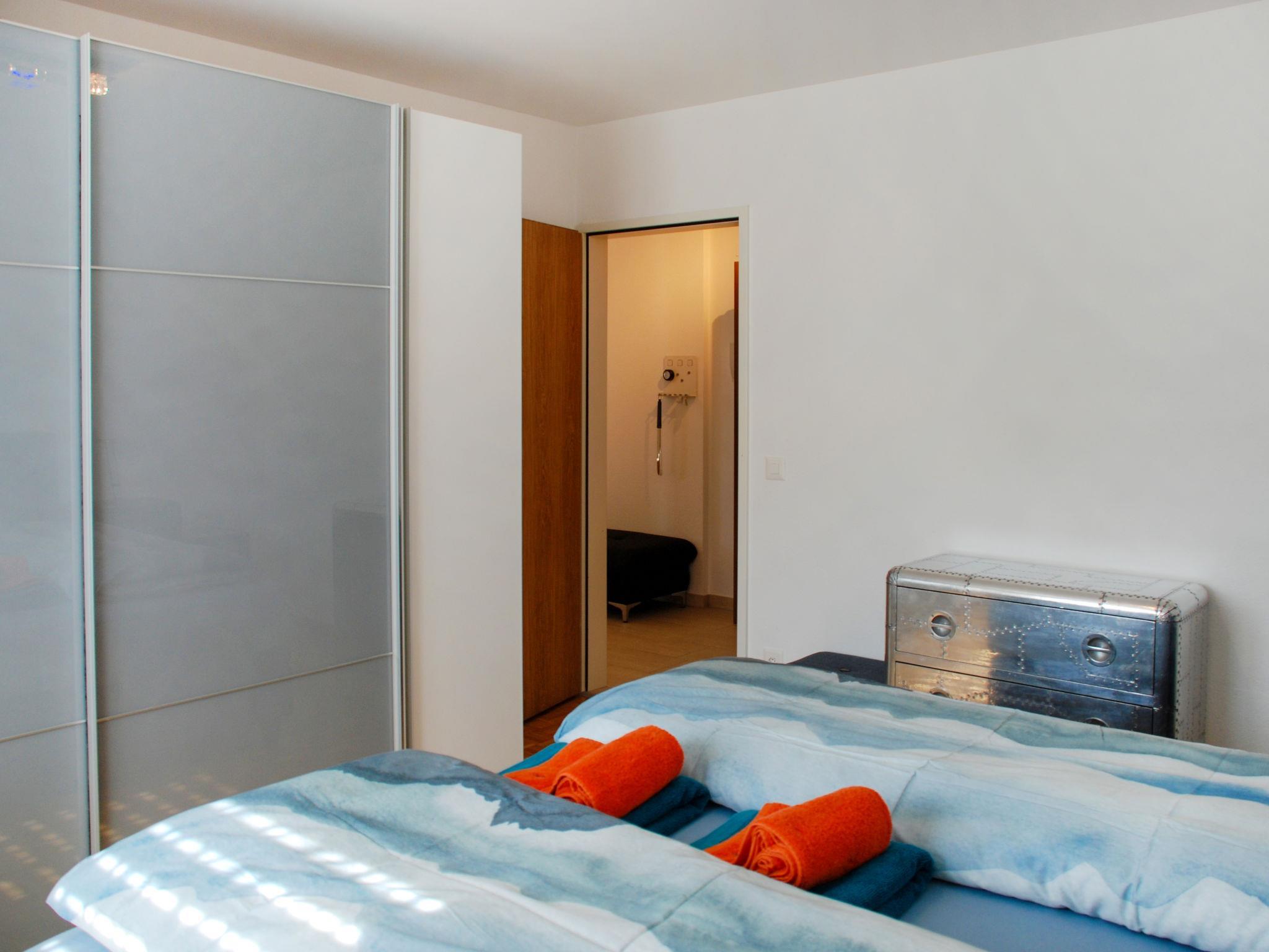 "Saleggi Apt. 20", 3-Zimmer-Wohnung 78 m2 im 4. Stock, Südwestlage. Geräumig und hell, komfortabel und modern eingerichtet: offenes grosses Wohn-/Esszimmer mit Esstisch und Kabel-TV (Flachbildschirm), Radio und CD. Ausgang zum Balkon. 1 Doppelzimmer mit 1 Doppelbett (2 x 90 cm, Länge 200 cm). 1 Zimmer mit 1 Doppelbett (2 x 90 cm, Länge 200 cm). Grosse, offene Küche (Backofen, Geschirrspüler, 4 Glaskeramikplatten, Toaster, Wasserkocher, elektrische Kaffeemaschine, Kapseln für die Kaffeemaschine (Delizio) extra, Fondue Set (Käse)). Dusche/WC. Grosser Balkon 12 m2, Südlage und Westlage. Balkonmöbel. Sehr schöne Panoramasicht auf die Berge und die Landschaft. Zur Verfügung: Bügeleisen, Kinderhochstuhl, Babybett bis 3 Jahre (extra), Haartrockner. Internet (WLAN). Parkplatz Nr. 22 (überdacht) beim Haus. Bitte beachten: Nichtraucher-Unterkunft. Maximal 2 Haustiere/Hunde erlaubt. Feuerlöscher. NL-00004318