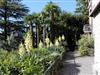 In 130 m über Privatstrasse und Treppen hinunter zum See komunaler Boot- und Badesteg