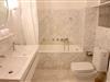 - Marmor-Badezimmer: Badewanne mit Duschenvorhang, Doppelwaschbecken, WC, Bidet,