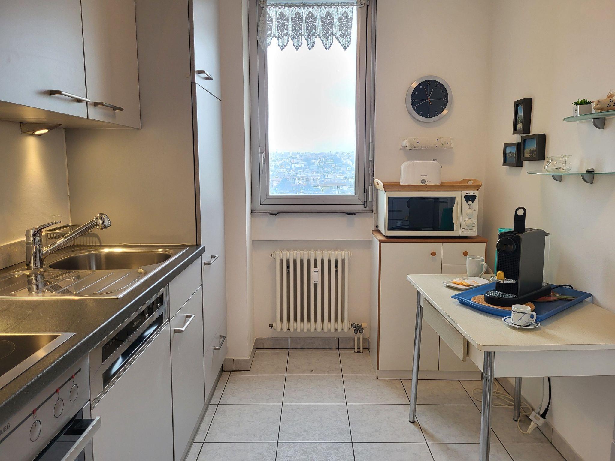 In der Residence Eldorado, oberhalb des Luganersees am Sonnenhang des Monte Brè gelegen, mit weitem Blick auf den See und die Stadt Lugano. Vollständig ausgestattet und bereit zum Genießen und Entspannen. Zentral gelegen und sehr gut erreichbar mit den öffentlichen Verkehrsmitteln aufgrund der Haltestelle am Haus, mit Garagenplatz für Ihre Nutzung.