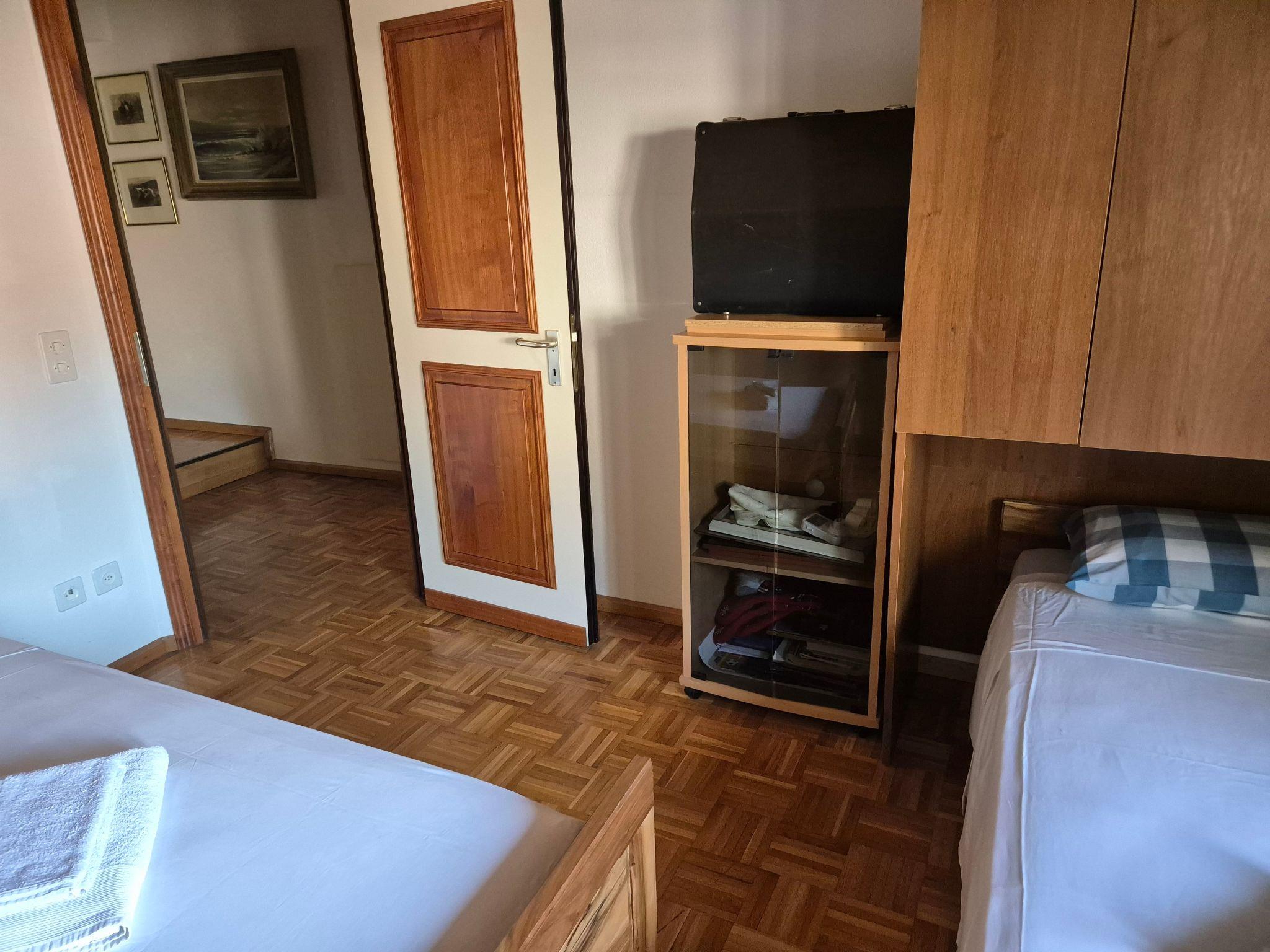 Ausgestattet mit 3 Schlafzimmern. Das erste mit Doppelbett, das zweite mit 2 Einzelbetten und das dritte mit nur 1 Einzelbett. Zwei Badezimmer, eines mit einer Badewanne und das andere mit einer Dusche.