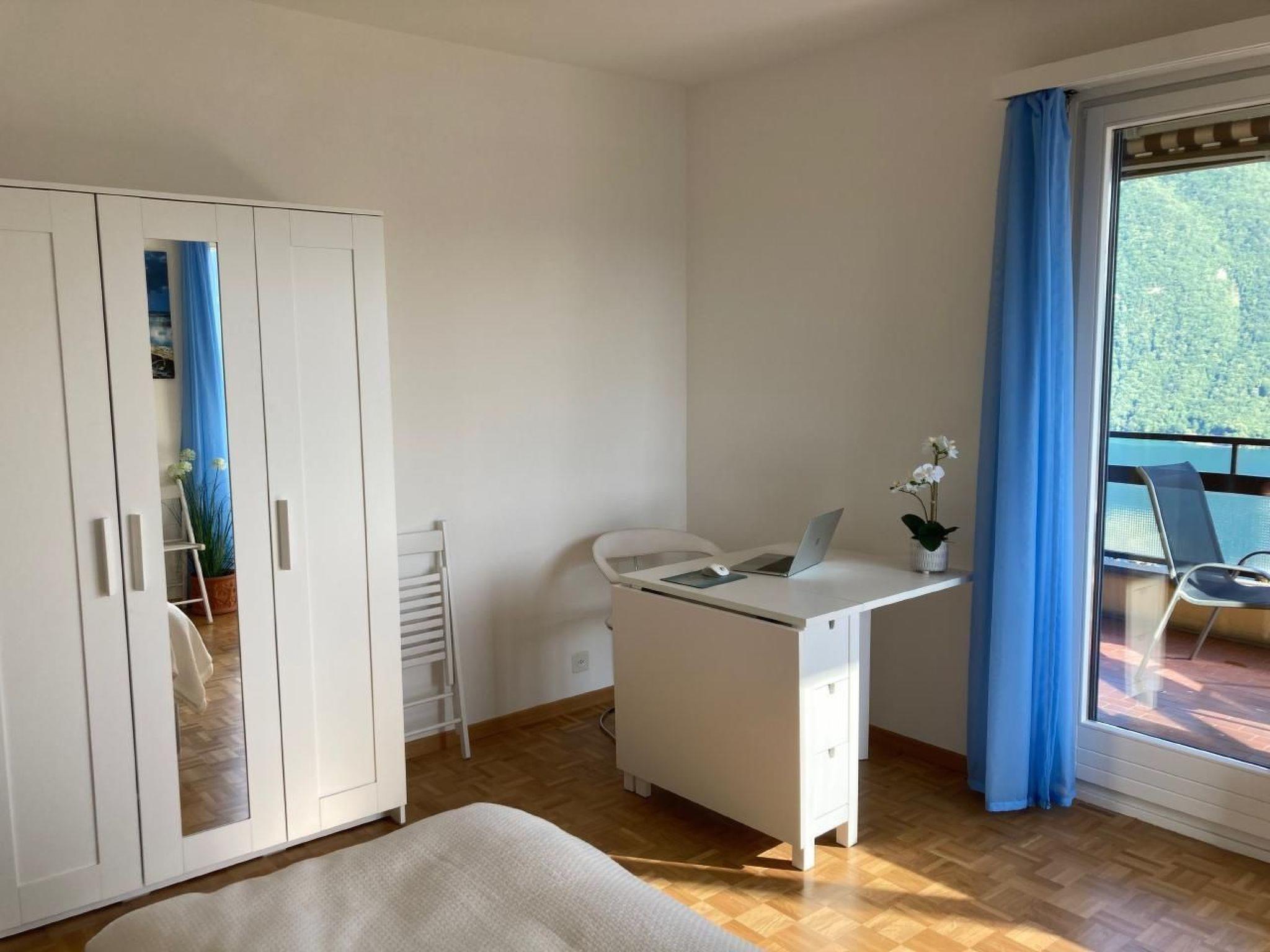 Wir vermieten unsere neu renovierte 3.5-Zimmerwohnung im exklusiven Villenviertel von Ruvigliana. Das «Appartamento d’oro» befindet sich zuoberst in einem Appartementhaus mit nur 6 Eigentumswohnungen. Öffentlich erreichen Sie das Haus von der nächstgelegenen Busstation in weniger als 10 Minuten; für Ihr Auto steht in der gedeckten Gemeinschafts-Parkanlage ein grosser Privatparkplatz zur Verfügung. Über eine breite Treppe mit 7 Stufen gelangen Sie zum Hauseingang, finden dort den Lift, fahren in die 3. Etage, und nach weiteren 9 Treppenstufen begrüsst Sie das «Appartamento d’oro». Die Anstrengung hat sich gelohnt! Treten Sie ein in die grosse lichtdurchflutete Wohnung und dann gehen Sie auf den Balkon: eine traumhaft schöne 180°-Panorama-Sicht über den Luganersee erwartet Sie! Dieser Beschreibung entnehmen Sie, dass die Ferienwohnung für gehbehinderte Personen nicht zu empfehlen ist; aus dem gleichen Grund und wegen der Lage von Wohnung und Balkon auf über 12m Höhe finden wir sie für Familien mit kleineren Kindern nicht geeignet. Wenn Sie aber wie die übrigen Hausbewohner Wert auf eine prachtvolle Aussicht in einzigartiger Atmosphäre legen und damit auch die dazu hilfreiche Hausordnung* akzeptieren, dann erleben Sie im «Appartamento d’oro» unvergessliche, erfreuliche und erholsame Ferientage! (*Die wichtigsten Punkte der Hausordnung: Nachtruhe von 22.00 Uhr abends bis 07.00 Uhr morgens, Sonntags- und Feiertagsruhe, keine lautstarken Feste feiern, Fernseher in Zimmerlautstärke einstellen, auf dem Balkon für Musik keine Lautsprecher verwenden.)Noch ein Hinweise: