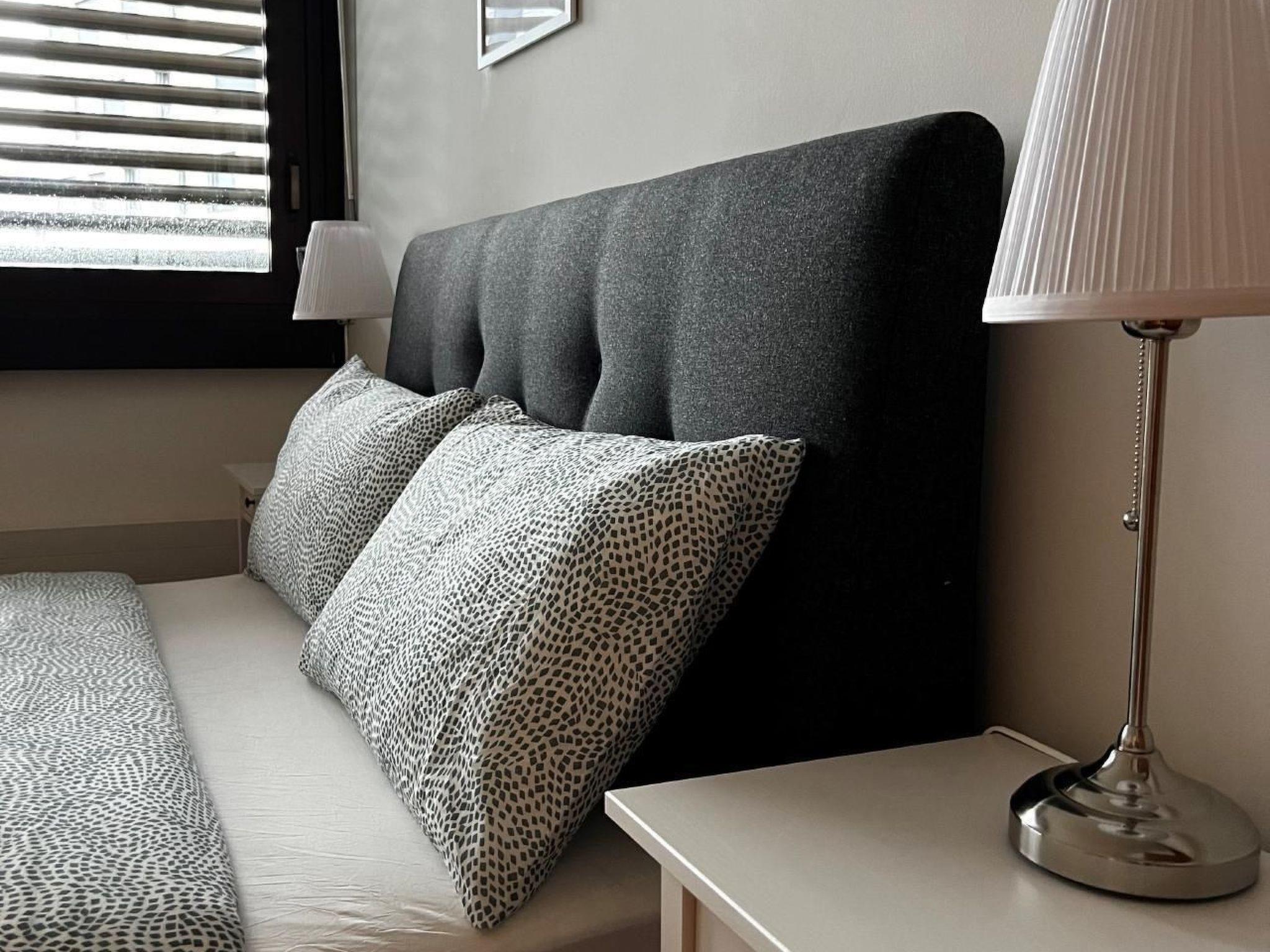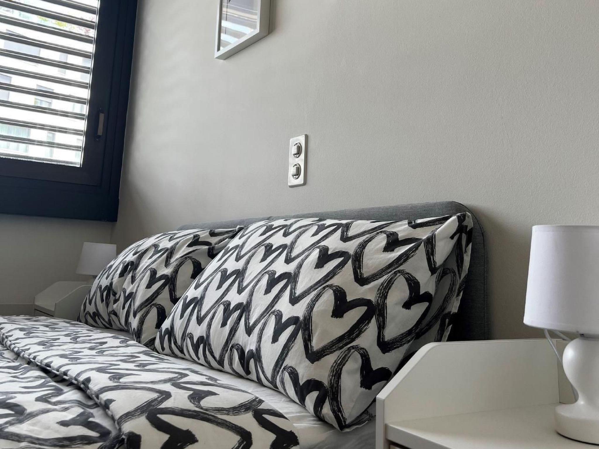Der 100 m² große Innenraum im 2. Stock mit günstiger Südlage besteht aus einem geräumigen und hellen Wohn-/Esszimmer mit Panoramafenstern und einem möblierten Balkon, ideal für Mahlzeiten mit Aussicht. Für Komfort sorgen eine funktionale und gemütliche Einrichtung, ein Fernseher mit internationalen Kanälen, kostenloses WiFi und eine große, offene Küche mit modernen Geräten wie Backofen, Spülmaschine, Mikrowelle und Kaffeemaschine. Die Schlafzimmer versprechen mit ihren bequemen Betten und der ruhigen Umgebung ruhige und erholsame Erholung.