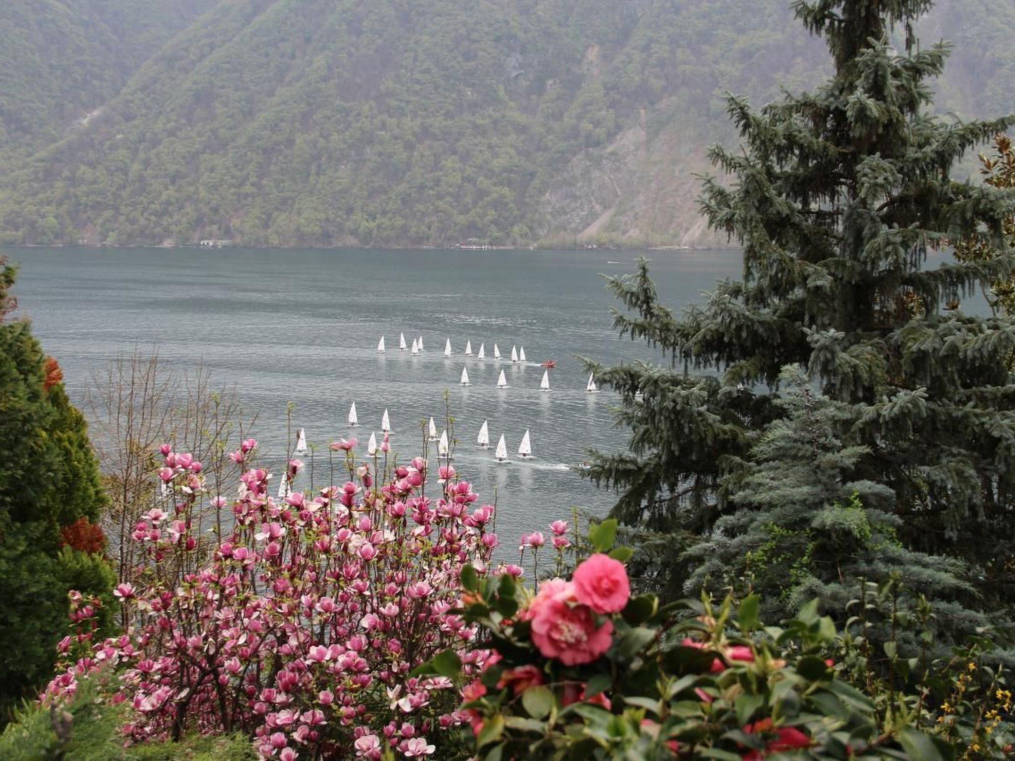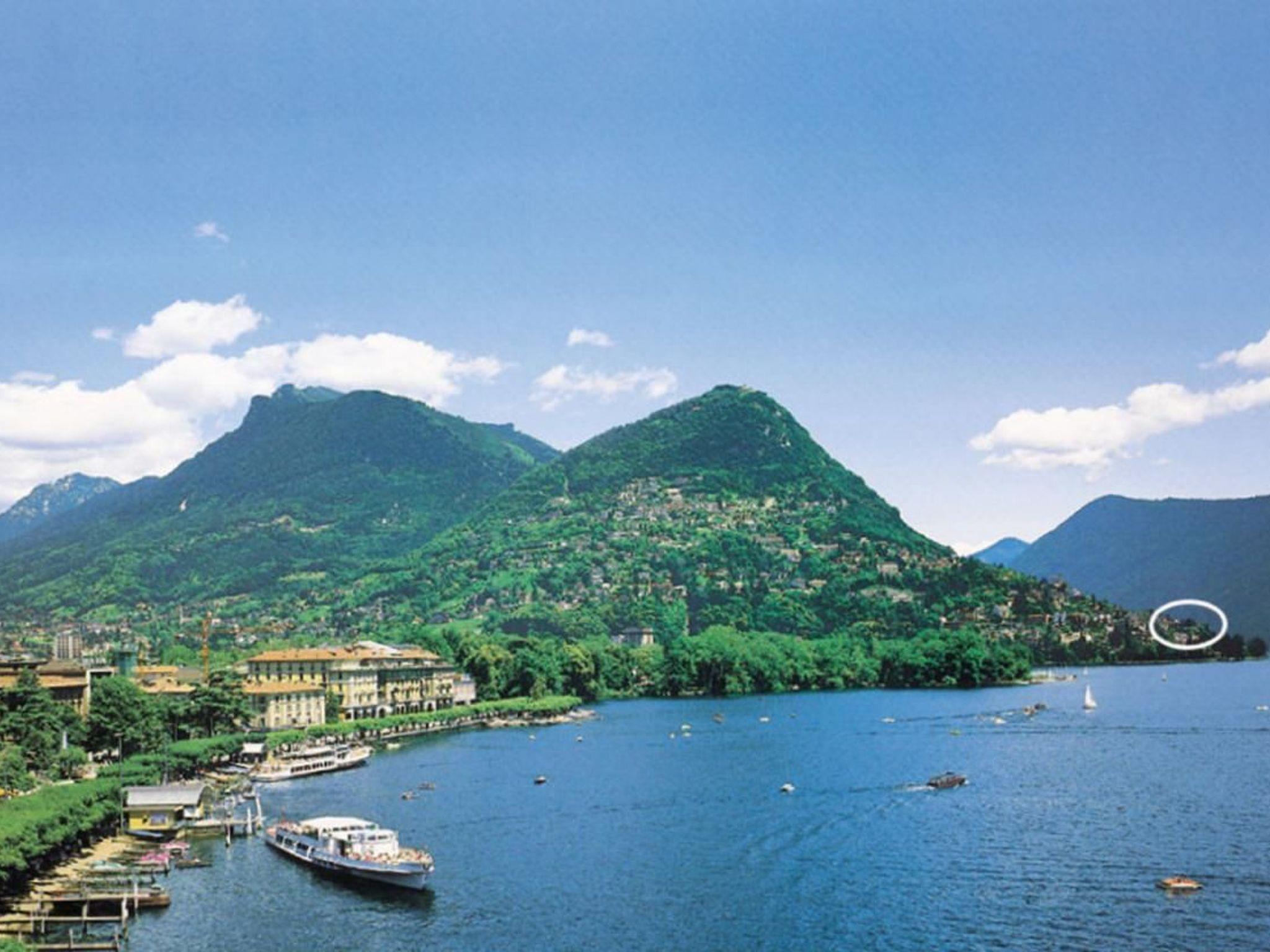 Eingang von aussen -- (Nichtraucher) unterschiedlicher Grösse für 1-9 Personen befindet sich im exklusivste Wohnbezirk von Lugano-Castagnola am Fusse des Monte Bré in Seenähe (70 m Luftlinie) und Uferweg zum Fischerdorf Gandria (1,3 km). Ruhig und sonnig abseits vom Verkehr von Komunal- und Kantonalstrasse zwischen privater Sackgasse via Violetta und antikem Oliven-Fussweg gelegen thront das nostalgische Anwesen über einem 4.000 m2 terrassierten mediterranen Baumgarten (naturbelassen) mit Panoramasicht auf Luganer See und nahe Berge.