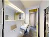 Badezimmer mit Dusche, Lavabo, WC, Handtuchwärmer und Fenster.