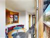 Grosszügiger sehr moderner Wohn-Essbereich im OG Chéminee, TV, und Internet. Moderne Küche mit Backofen, Geschirrspülmaschine, Chicco d'Oro-Kapselkaffeemaschine, Speisekammer mit grossem Kühlschrank und Gefrierfach, Esstisch und Treppe zum Aussenbereich.
