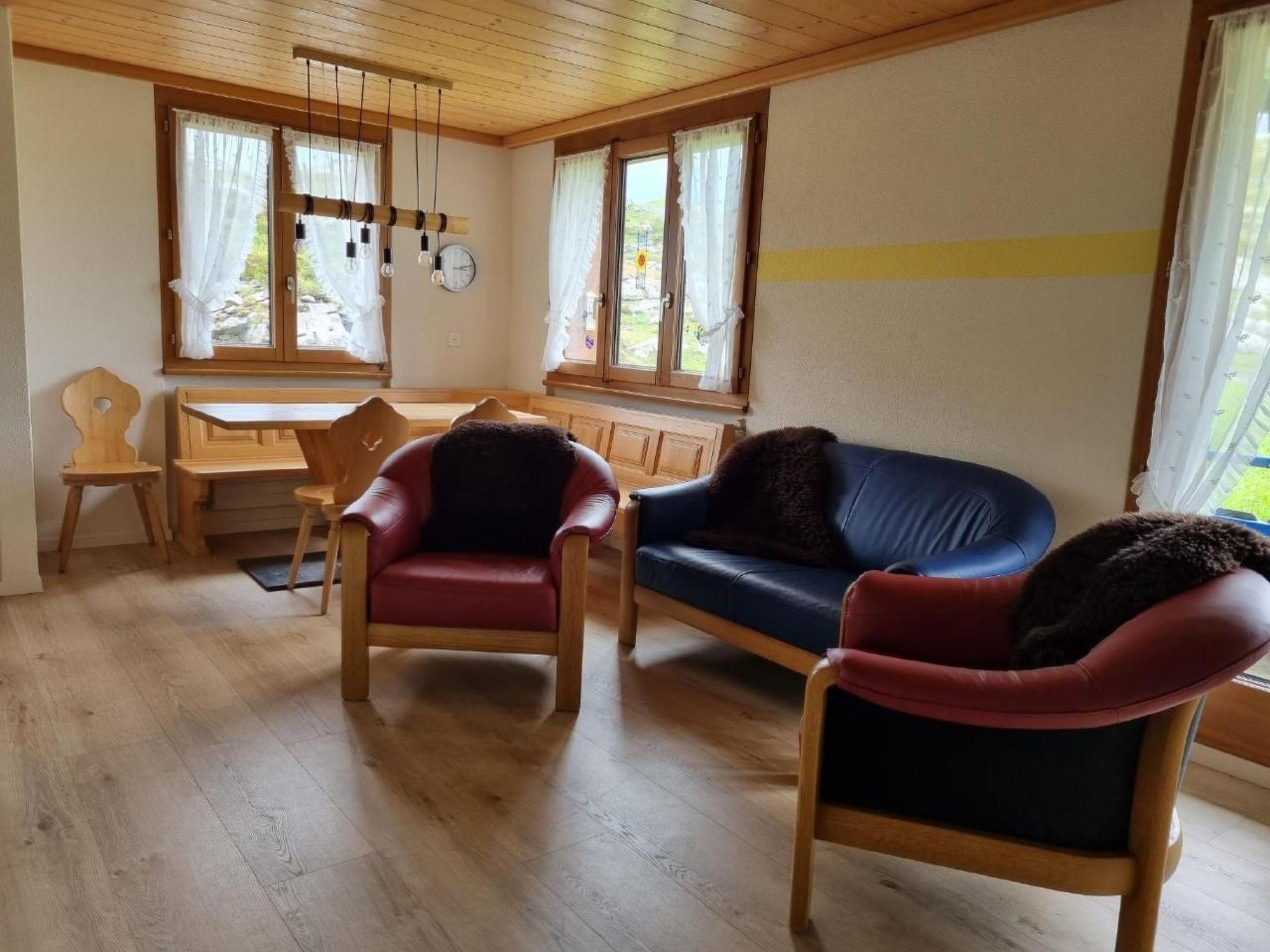 Die im Jahr 2020 renovierte Ferienwohnung befindet sich im 1. Stock des Hauses Graustock. Sie verfügt über ein Schlafzimmer mit zwei Stockbetten (4 Schlafplätze) und ein geräumiges Wohn-/Esszimmer. Im Wohnbereich hat es ein ausziehbares Bettsofa, welches zwei weitere Schlafplätze bietet.
