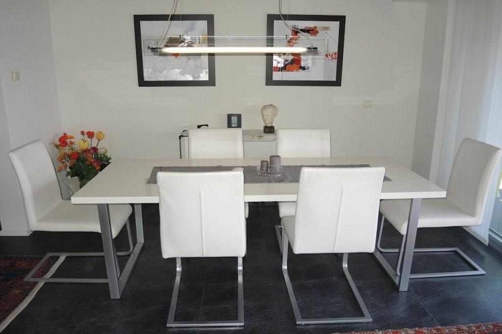 , Eingangshalle(), Wohnzimmer(, TV), Küche(, Esstisch, Wasserkocher, Toaster, Kaffeemaschine, Backofen, Spülmaschine, Kühlschrank, Tiefkühlschrank), Schlafzimmer(Doppelbett), Schlafzimmer(Doppelbett), Schlafzimmer(Einzelbett), Schlafzimmer(Einzelbett), Badezimmer(, Dusche, Föhn), Badezimmer(, Dusche, Föhn), Internet, Internet, Grill, Trockner, Waschmaschine, Heizung, Gartenmöbel, Liegen, Parkplatz