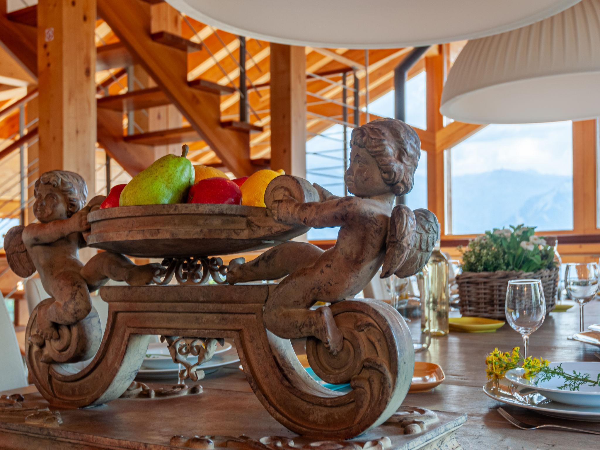 "Chalet Aquarius", 6-Zimmer-Chalet 245 m2 auf 3 Stockwerken. Modern und geschmackvoll eingerichtet: grosses Wohn-/Esszimmer 85 m2 mit Panoramafenster mit Schwedenofen, Kabel-TV und DVD. Offene Küche (Backofen, Geschirrspüler, 5 Induktionskochplatten, Toaster, Wasserkocher, Mikrowelle, elektrische Kaffeemaschine, Kapseln für die Kaffeemaschine (Nespresso) extra, Racletteofen, Fondue Set (Käse)). Sep. WC. Heizung. Unteres Geschoss: 1 Zimmer mit 2 Betten (90 cm, Länge 200 cm), Dusche/WC. 2 Zimmer, jedes Zimmer mit 2 Betten (90 cm, Länge 200 cm). Bad/Dusche, sep. WC, Sauna. Obergeschoss: 1 Zimmer mit 1 Doppelbett (2 x 90 cm, Länge 200 cm), Dusche/WC. 1 Zimmer mit 1 Doppelbett (2 x 90 cm, Länge 200 cm), Dusche/WC. 4 Balkone, Nordostlage und Nordwestlage, Terrasse, Westlage. Terrassenmöbel, Gartengrill, Liegestühle (8). Panoramasicht auf die Berge, das Tal und die Ortschaft. Zur Verfügung: Waschmaschine, Wäschetrockner, Kinderhochstuhl, Babybett, Haartrockner. Internet (WLAN, gratis). Parkplatz (2 Autos), Garage (2 Autos), Höhe 200 cm, Breite 245 cm. Bitte beachten: Nichtraucher-Unterkunft.